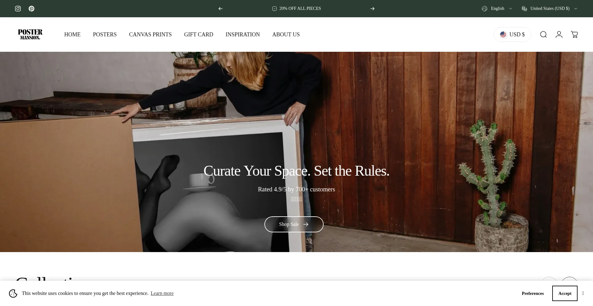 The website implements cookie consent mechanisms in compliance with privacy regulations such as GDPR or CCPA. This demonstrates that postermansion.com adheres to data protection standards and provides users with control over personal data collection practices.