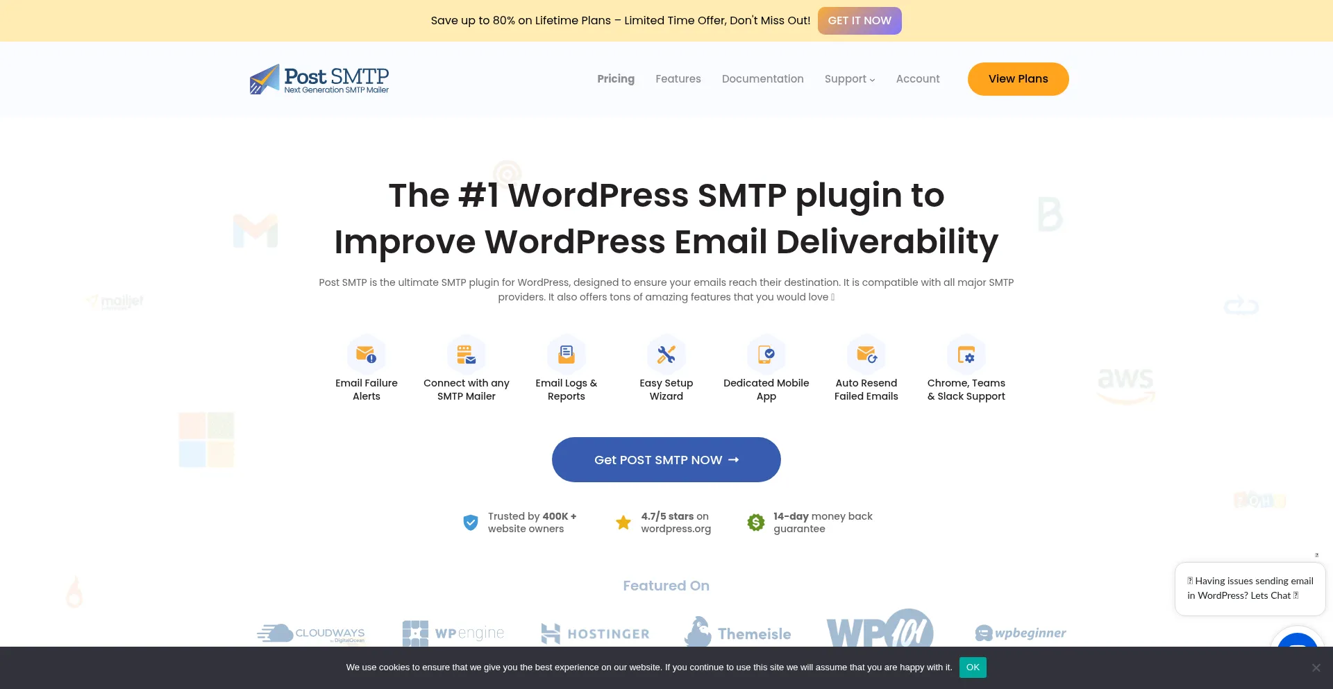 Post SMTP is the most powerful SMTP Mailing plugin for its users that maximizes the deliverability of emails generated by WordPress sites.