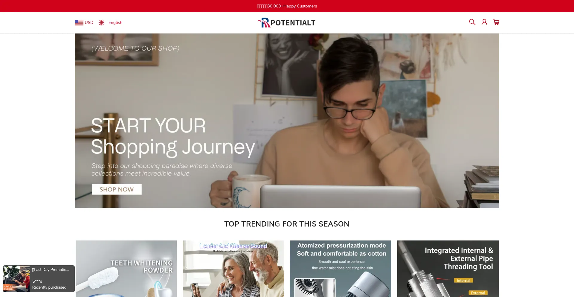 Potentialt.com exhibits characteristics consistent with scam-like e-commerce operations. The site appears to accept payments while customer reports suggest data collection issues.