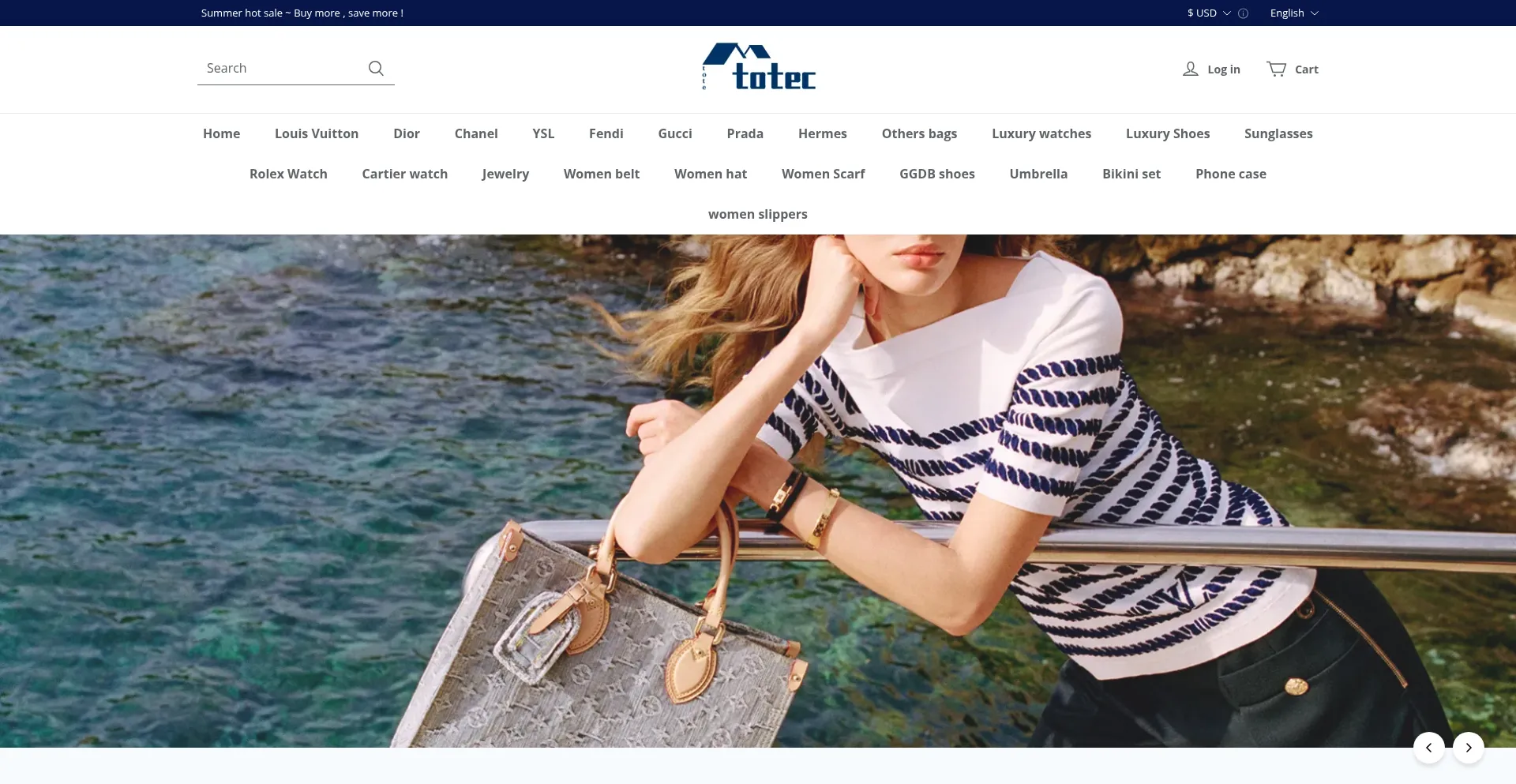 The website features luxury brand names or high-value products. This may indicate potential counterfeit merchandise or unauthorized brand usage, particularly if the site lacks official dealer authorization. Exercise heightened caution when evaluating authenticity.