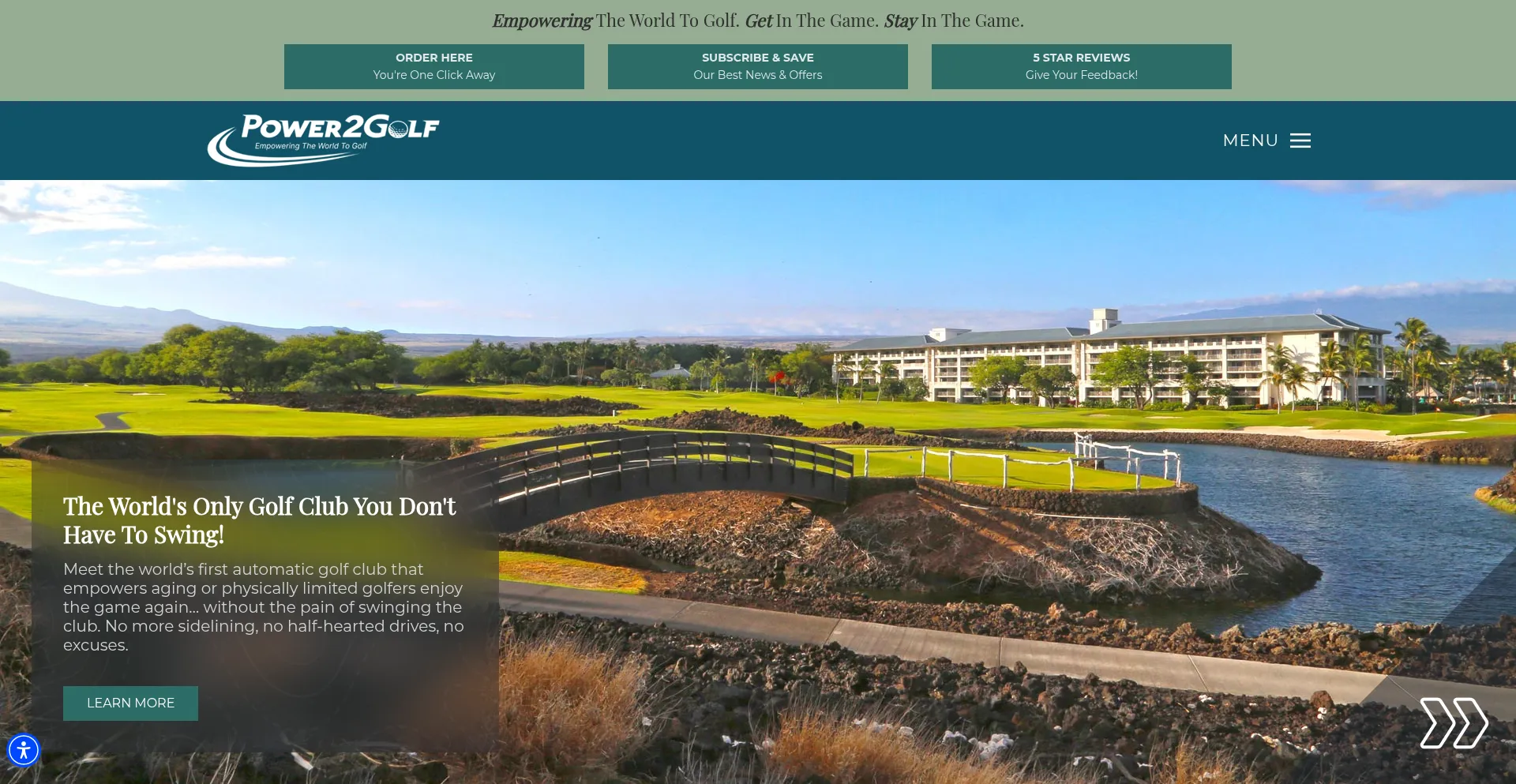 'Meet the world’s first automatic golf club that empowers aging or physically limited golfers enjoy the game again… without the pain of swinging the club. Click Here >>