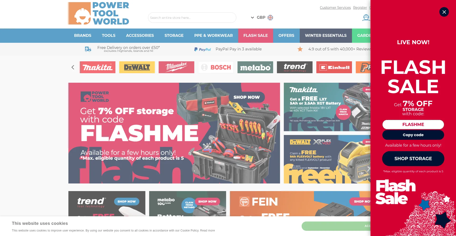 The website implements cookie consent mechanisms in compliance with privacy regulations such as GDPR or CCPA. This demonstrates that powertoolworld.co.uk adheres to data protection standards and provides users with control over personal data collection practices.