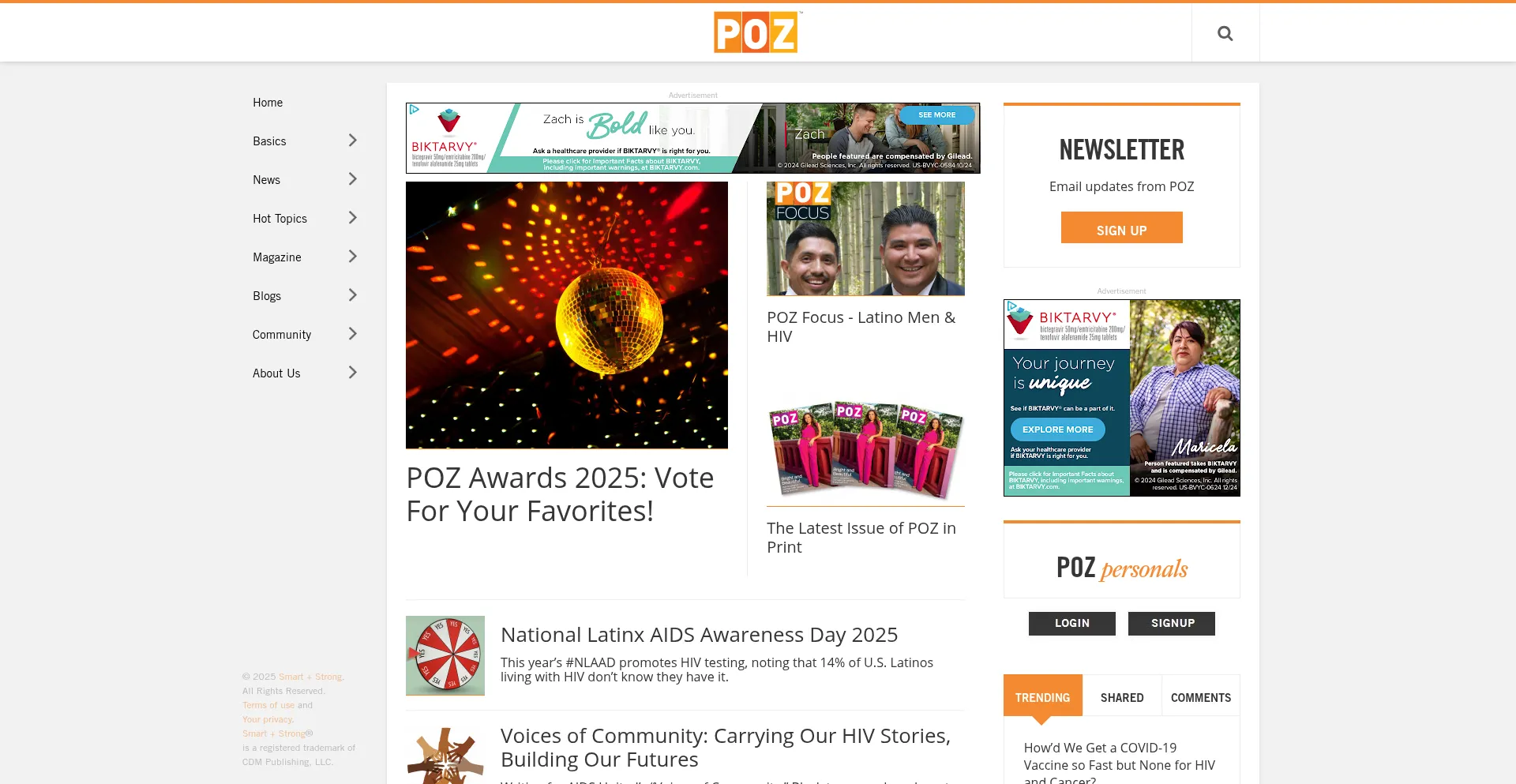 POZ serves the community of people living with and those affected by HIV/AIDS with daily news, treatment updates, personal profiles, investigative features, videos, blogs, forum...
