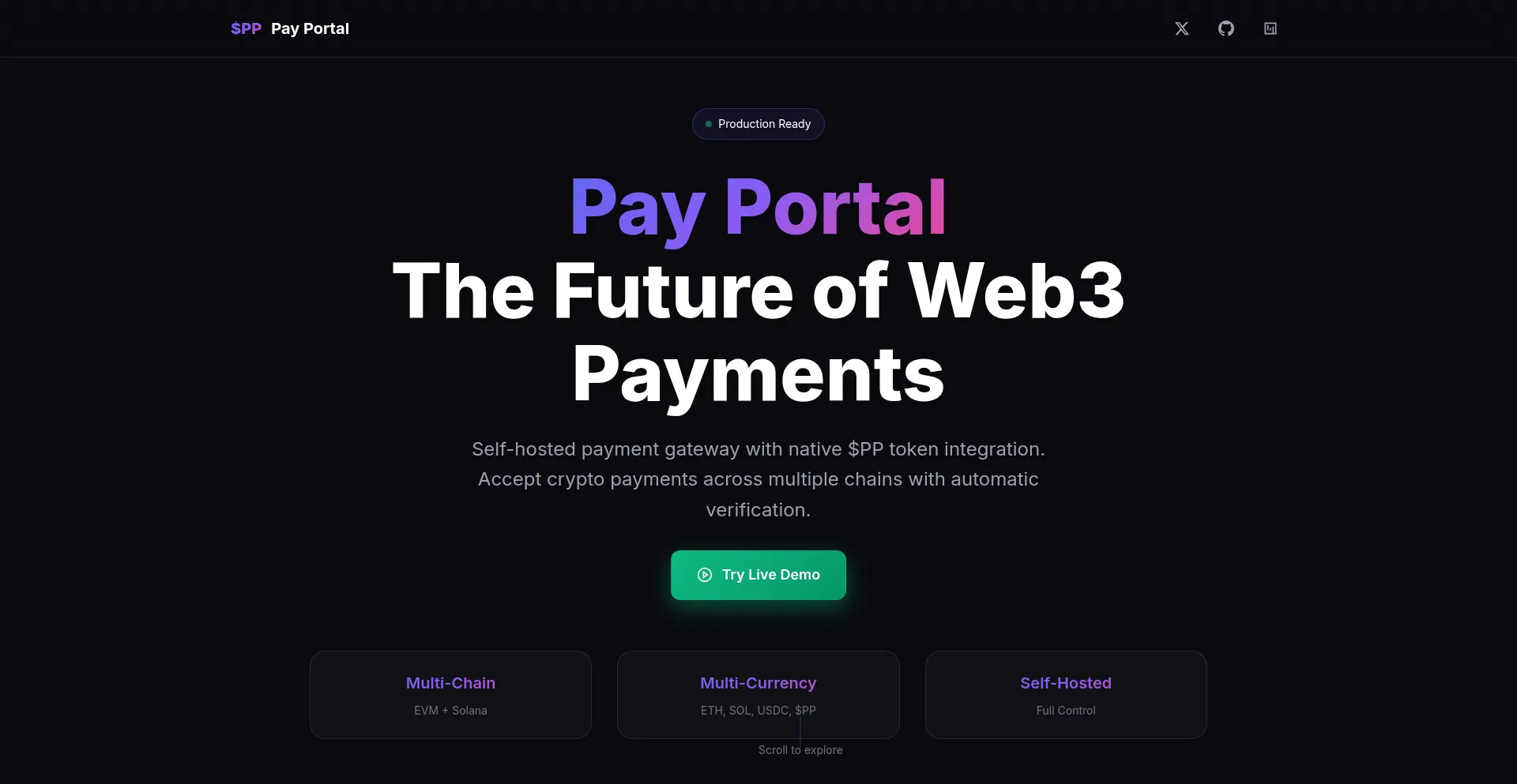 Pay Portal - Self-hosted payment gateway with native $PP token integration. Accept crypto payments across multiple chains with automatic verification.