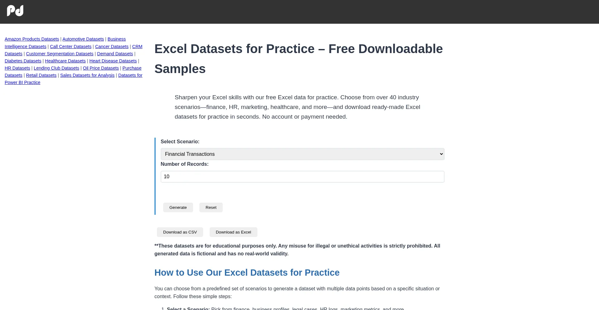 Practicedatasets.online Website Review