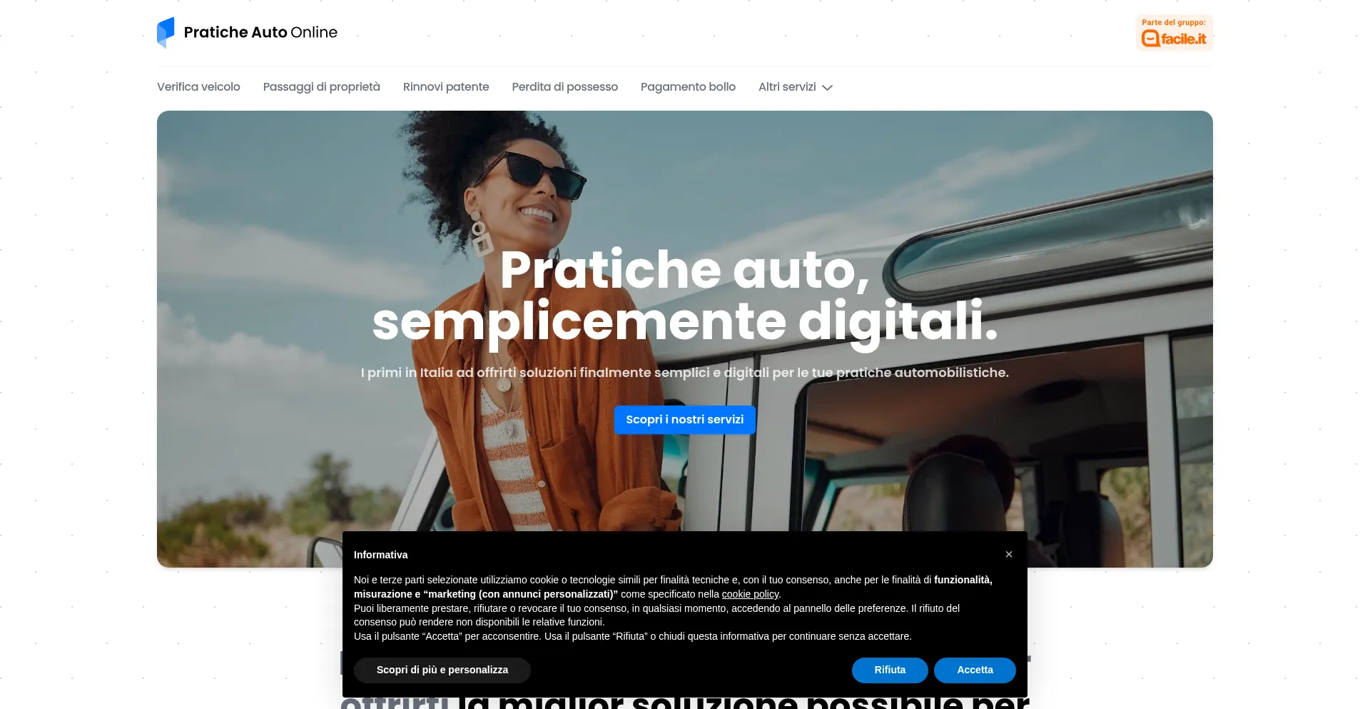 The website implements cookie consent mechanisms in compliance with privacy regulations such as GDPR or CCPA. This demonstrates that praticheauto.online adheres to data protection standards and provides users with control over personal data collection practices.