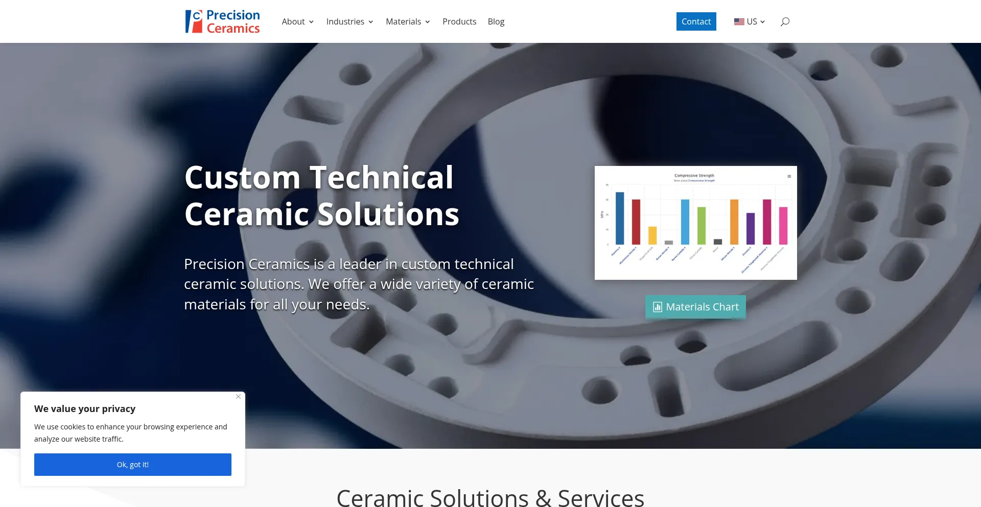 The website implements cookie consent mechanisms in compliance with privacy regulations such as GDPR or CCPA. This demonstrates that precision-ceramics.com adheres to data protection standards and provides users with control over personal data collection practices.