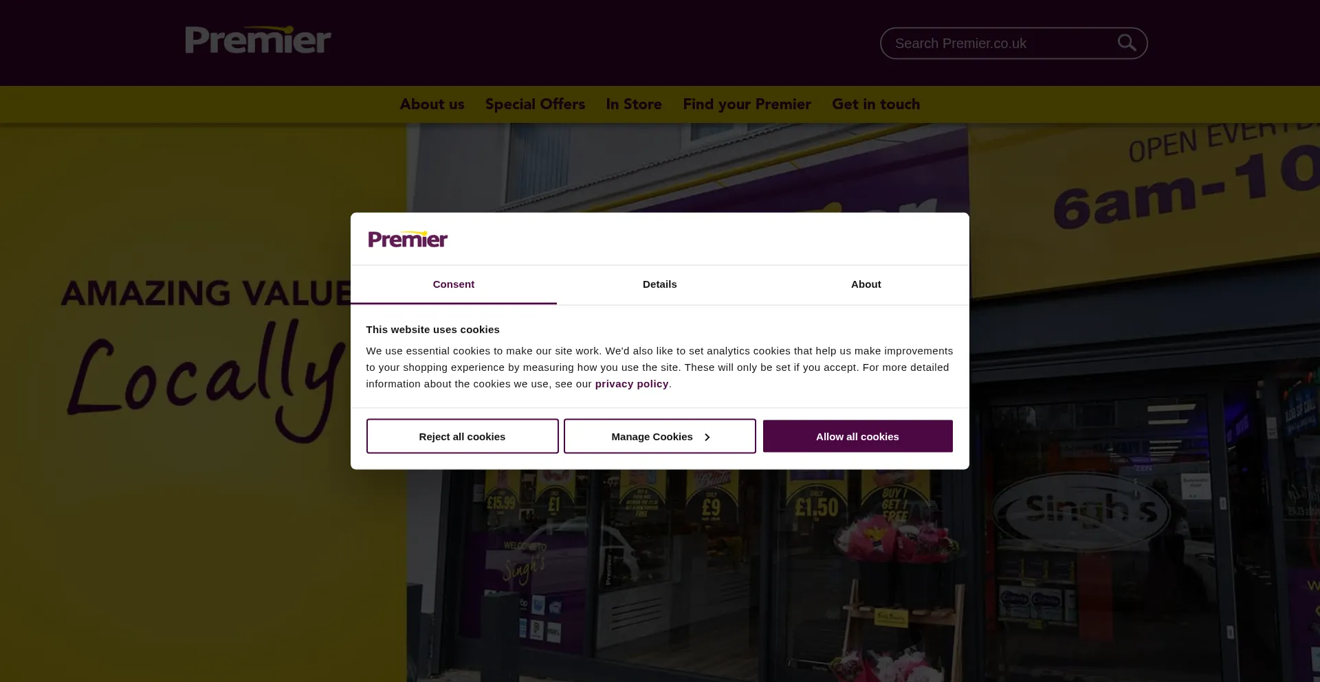 The website implements cookie consent mechanisms in compliance with privacy regulations such as GDPR or CCPA. This demonstrates that premier-stores.co.uk adheres to data protection standards and provides users with control over personal data collection practices.