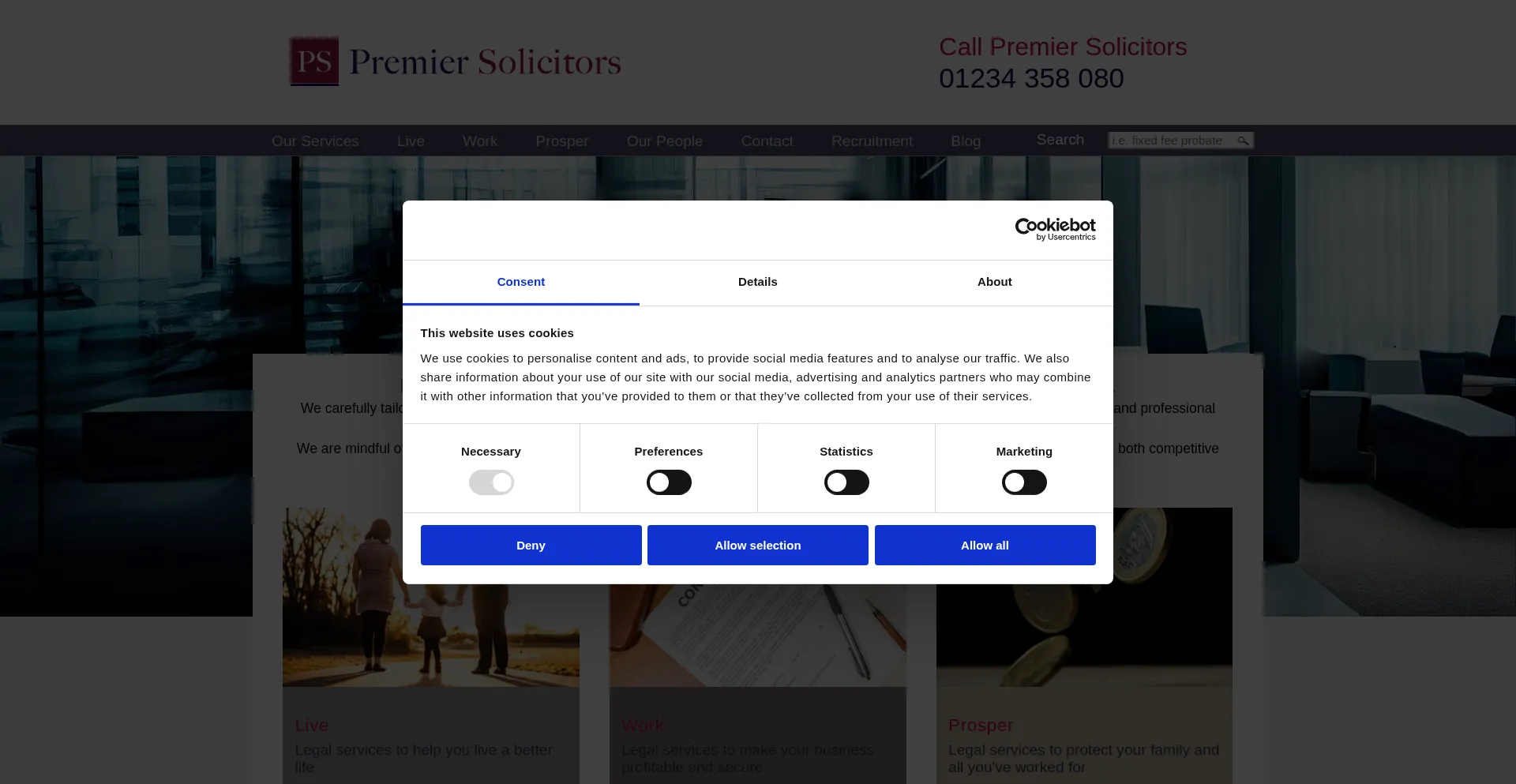 The website implements cookie consent mechanisms in compliance with privacy regulations such as GDPR or CCPA. This demonstrates that premiersolicitors.co.uk adheres to data protection standards and provides users with control over personal data collection practices.