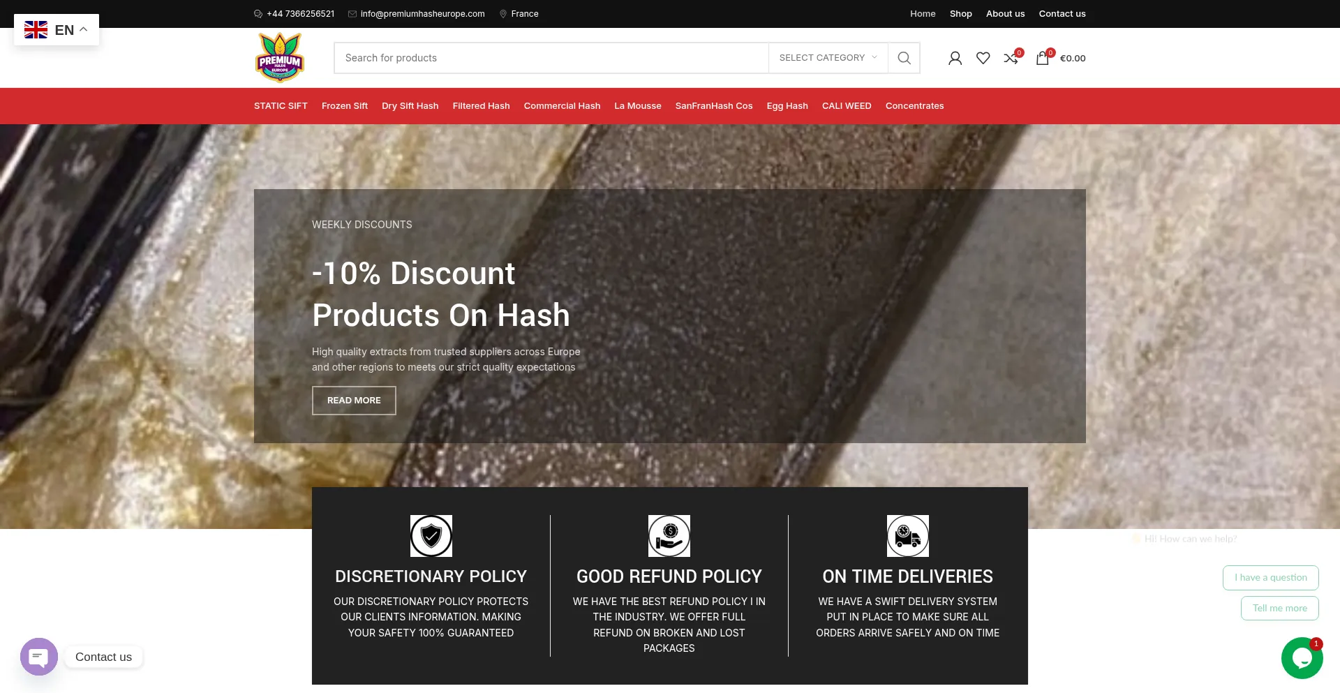 Analysis indicates that premiumhasheurope.com operates as an e-commerce platform facilitating online transactions for goods or services. The website implements shopping cart functionality, payment processing systems, and product catalog features typical of commercial retail operations.
