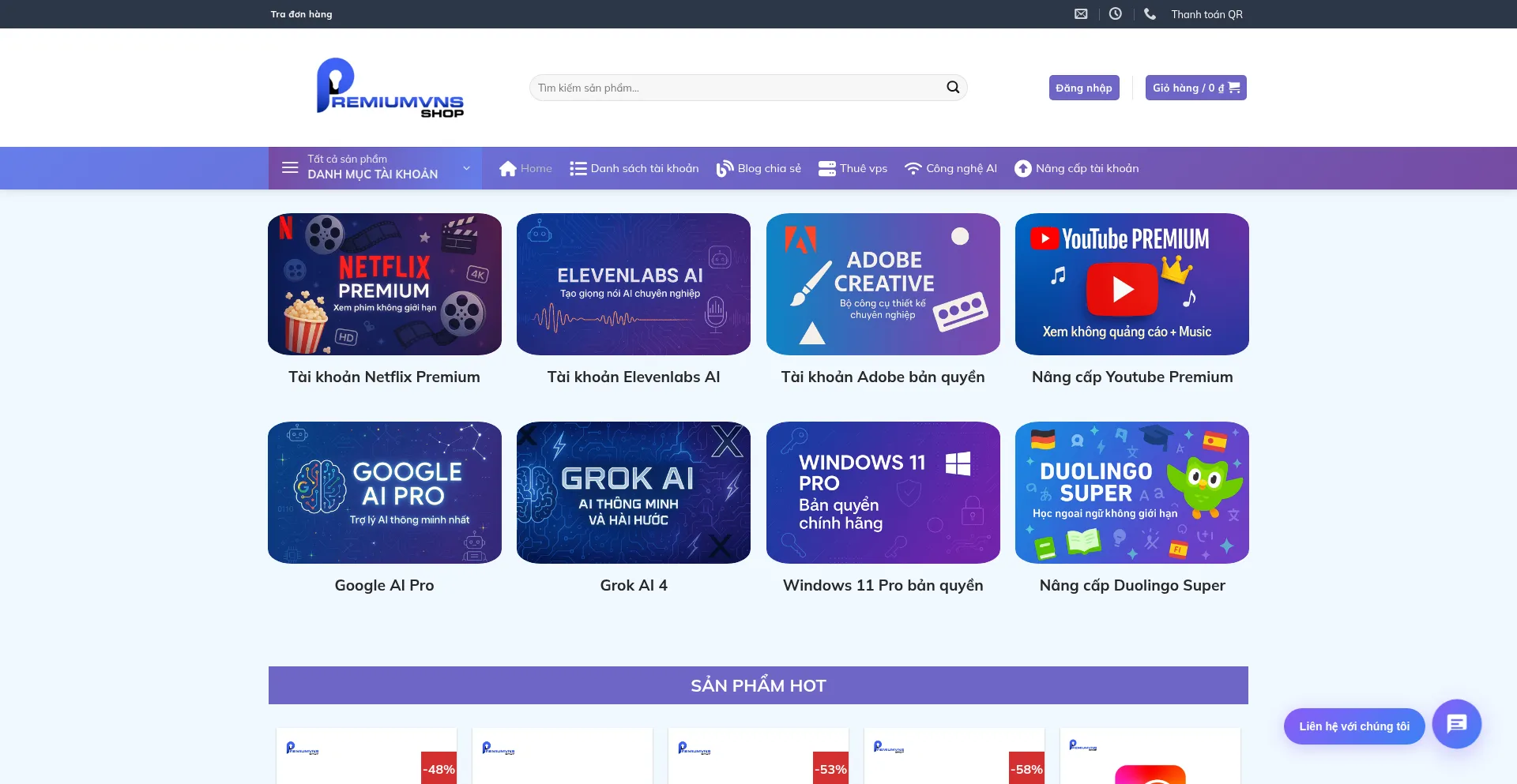 PremiumVNS - Tài Khoản Premium & Phần Mềm Bản Quyền GiÑ Rẻ