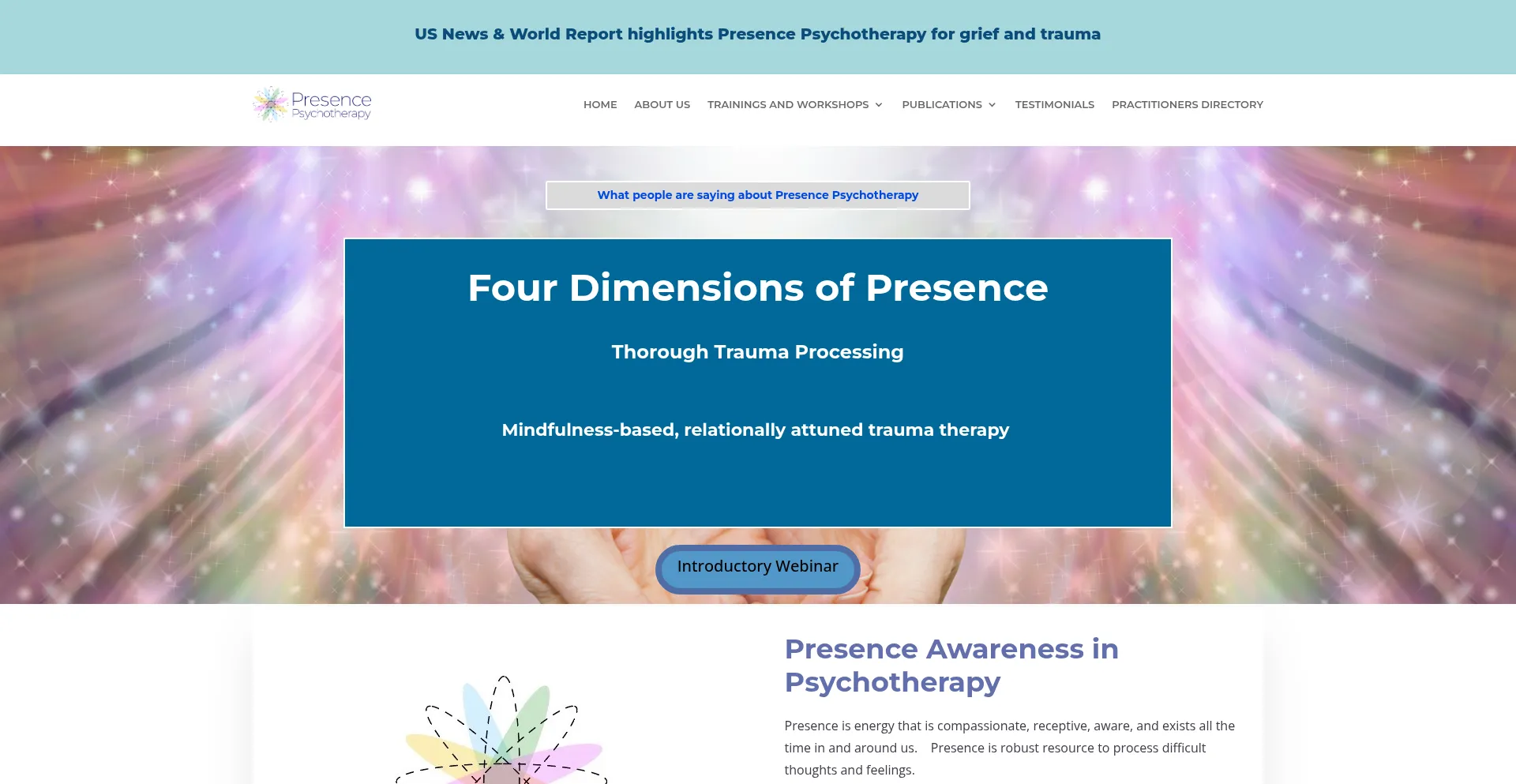Presence Psychotherapy is a trauma therapy that utilizes the Power of Presence Awareness Presence Therapy that orients clients to Four Dimensions of Presence to access and heal ...