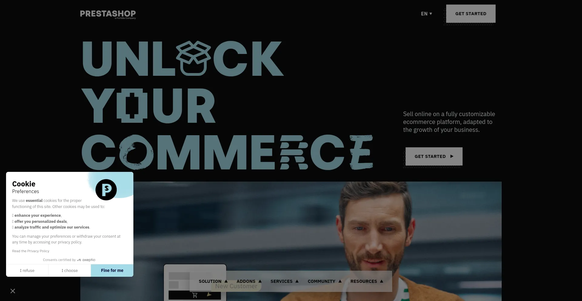 The website implements cookie consent mechanisms in compliance with privacy regulations such as GDPR or CCPA. This demonstrates that prestashop.com adheres to data protection standards and provides users with control over personal data collection practices.
