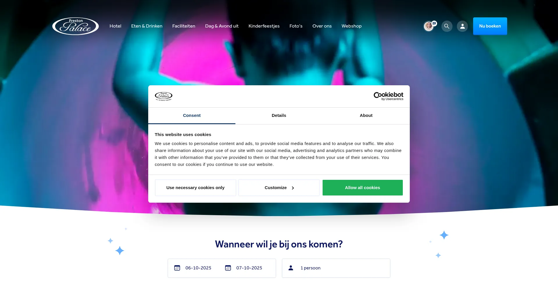 The website implements cookie consent mechanisms in compliance with privacy regulations such as GDPR or CCPA. This demonstrates that prestonpalace.nl adheres to data protection standards and provides users with control over personal data collection practices.