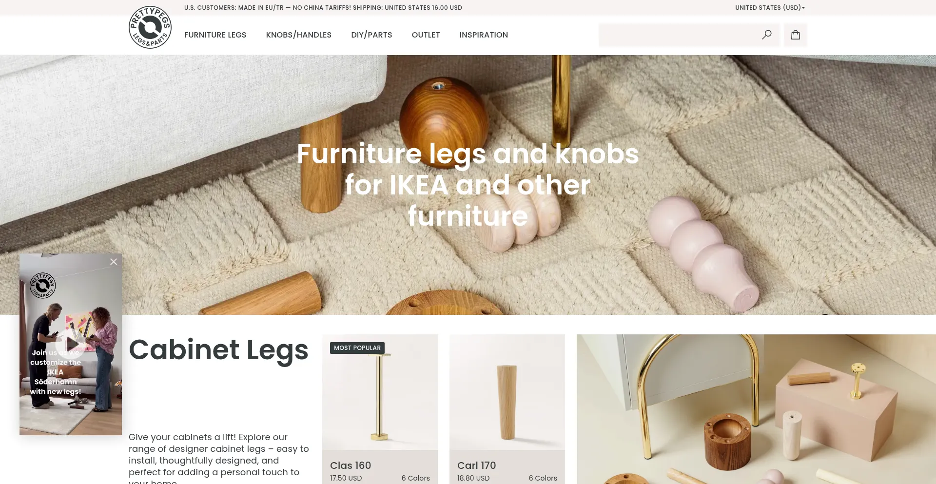 Customized furniture legs and knobs to personalize IKEA furniture. Wide range of different colors, materials and heights.