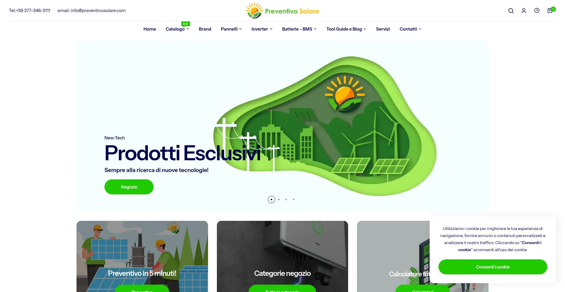 The preventivosolare.com website utilizes free e-commerce platform solutions, which may indicate cost-conscious operations but could also suggest limitations in security features, customer support, or advanced functionality compared to enterprise-grade solutions.