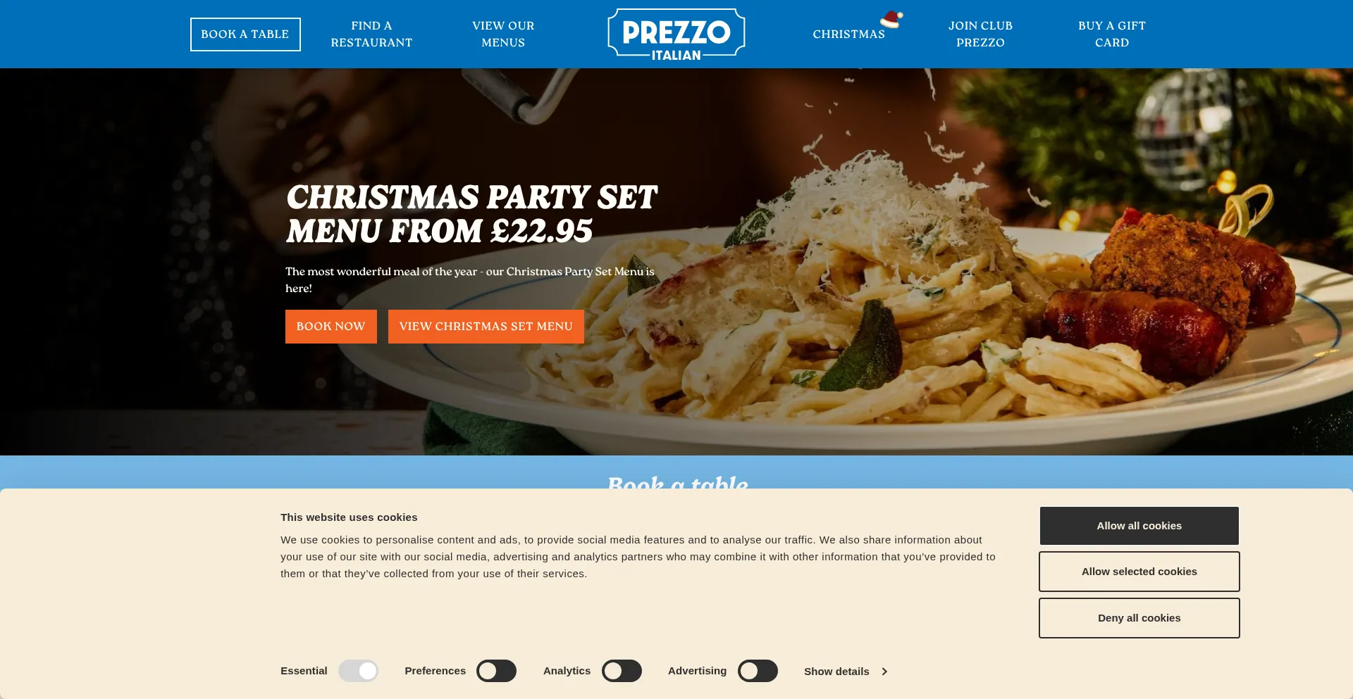 The website implements cookie consent mechanisms in compliance with privacy regulations such as GDPR or CCPA. This demonstrates that prezzo.co.uk adheres to data protection standards and provides users with control over personal data collection practices.