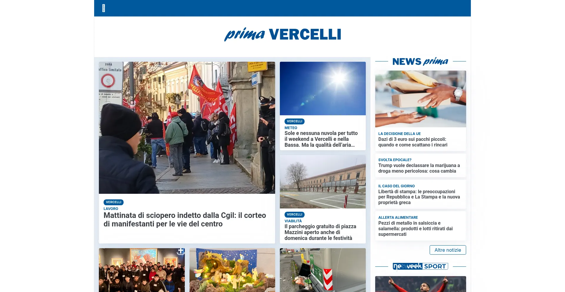 Prima Vercelli. Notizie locali, contenuti e servizi aggiornati su cronaca, economia, sport, politica, cultura e turismo