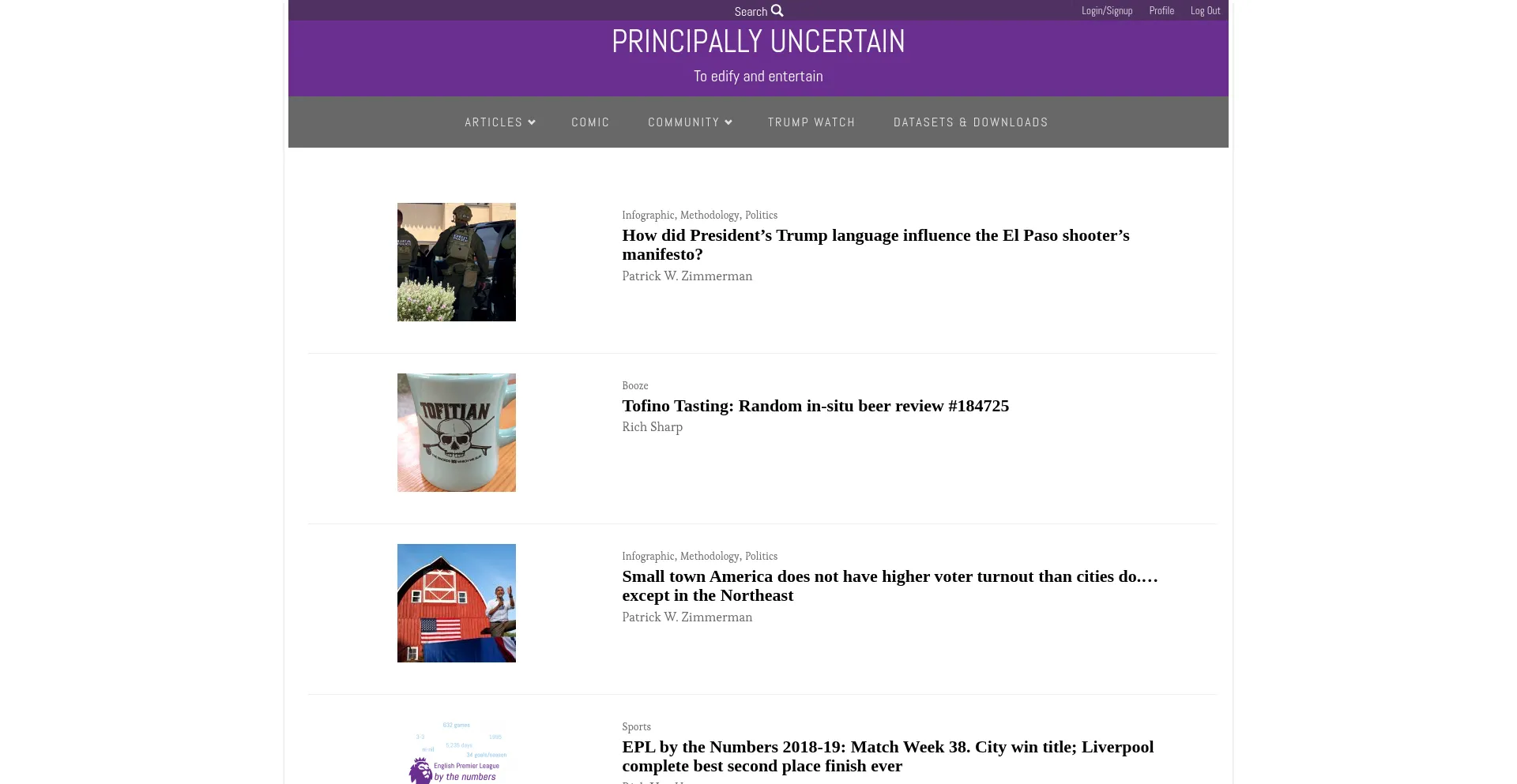 principallyuncertain.com uses Bootstrap, a widely-adopted open-source framework for responsive web development. Bootstrap enables efficient creation of mobile-friendly interfaces through standardized components and styling.