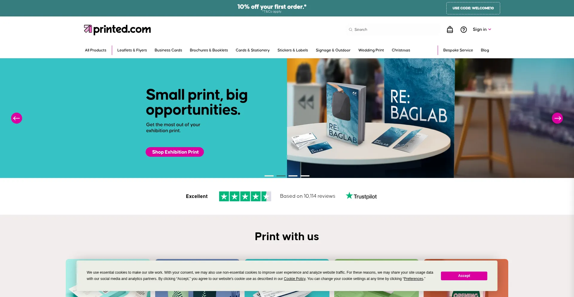 The website implements cookie consent mechanisms in compliance with privacy regulations such as GDPR or CCPA. This demonstrates that printed.com adheres to data protection standards and provides users with control over personal data collection practices.