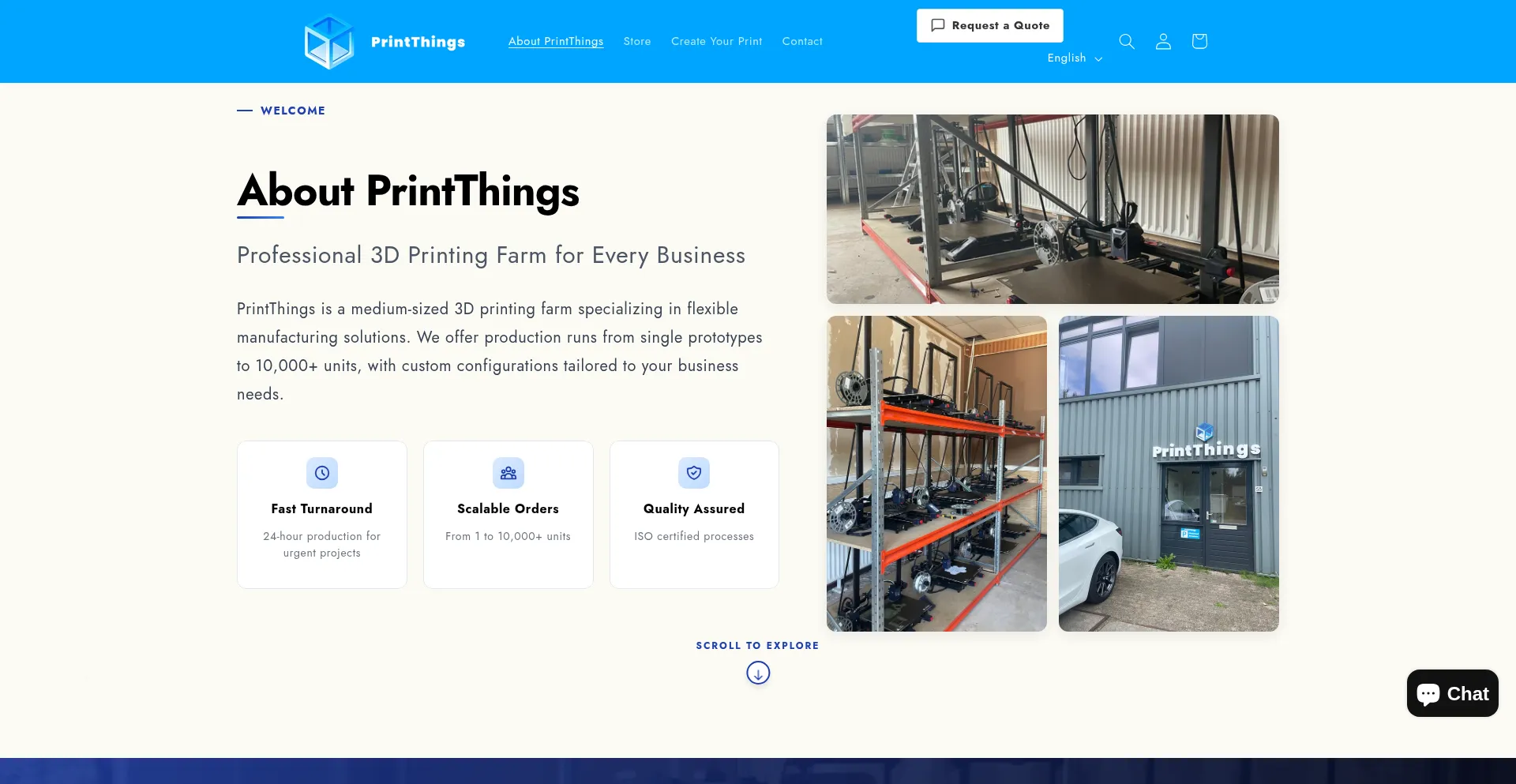 The printthings.store website utilizes free e-commerce platform solutions, which may indicate cost-conscious operations but could also suggest limitations in security features, customer support, or advanced functionality compared to enterprise-grade solutions.