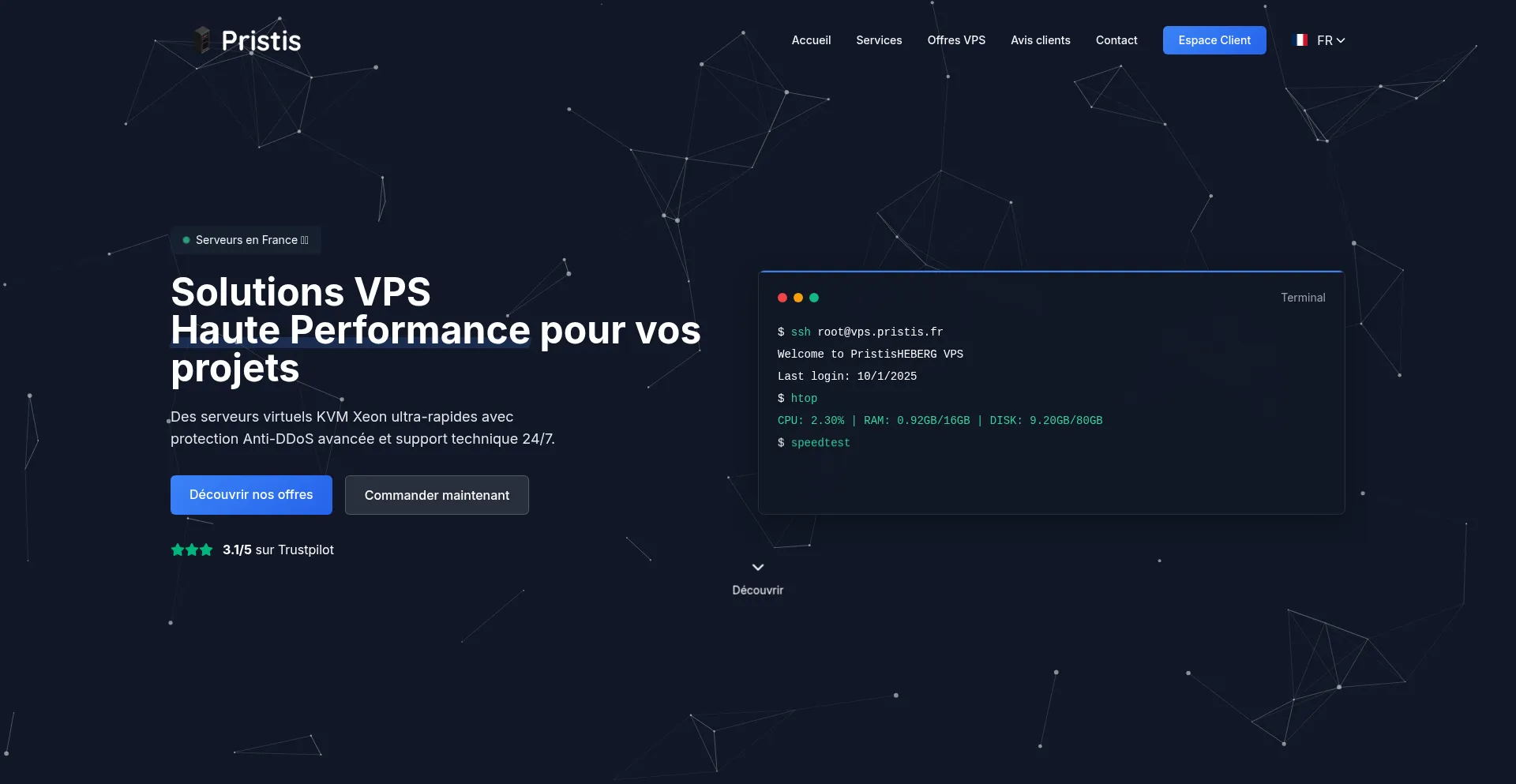 Hébergement VPS rapide et fiable en France. Support réactif et offres adaptées à tous vos besoins sur Pristis.fr.