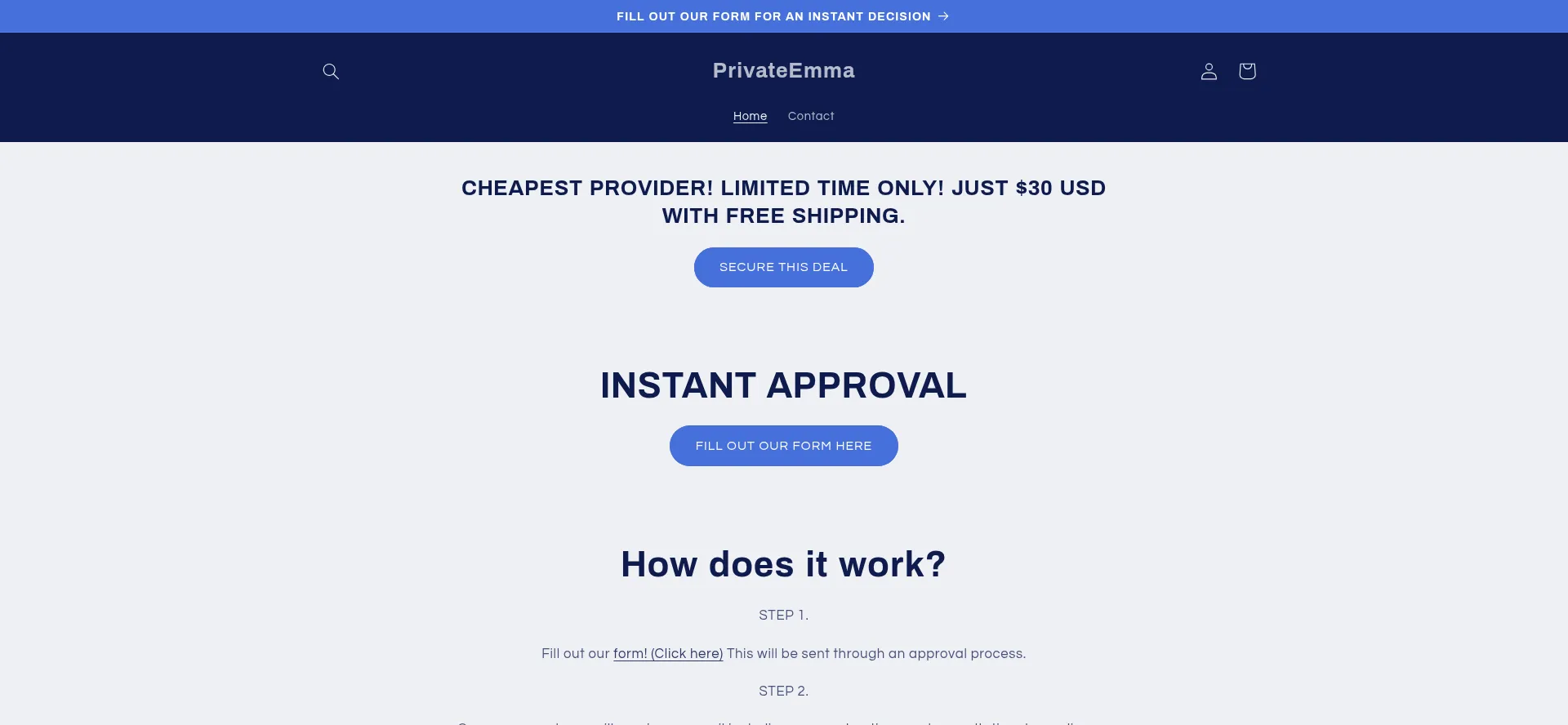 Analysis indicates that privateemma.co operates as an e-commerce platform facilitating online transactions for goods or services. The website implements shopping cart functionality, payment processing systems, and product catalog features typical of commercial retail operations.