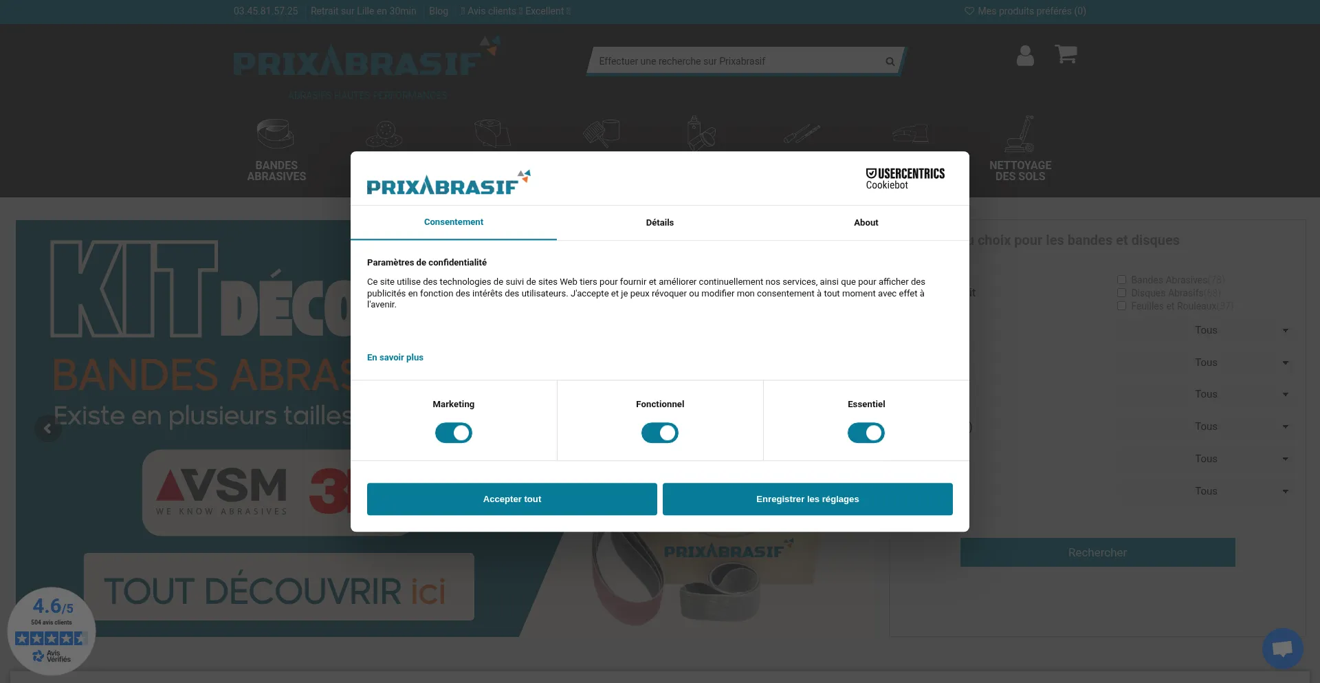bat.bing.com scripts.clarity.ms www.netreviews.com app.usercentrics.eu consent.cookiebot.com client.crisp.chat stats.g.doubleclick.net www.prixabrasif.fr googleads.g.doubleclick.net www.google.com +30 more
