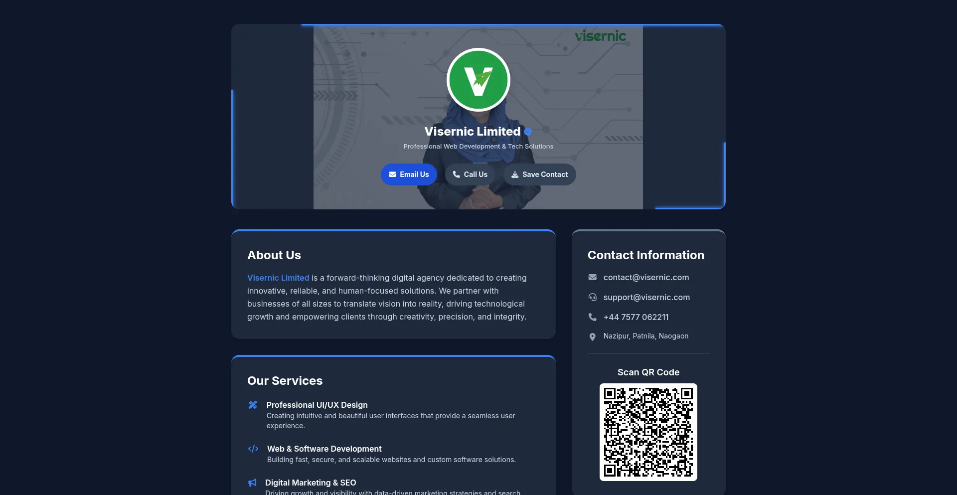 Visernic Limited is a professional digital agency specializing in UI/UX design, web development, and tech solutions.