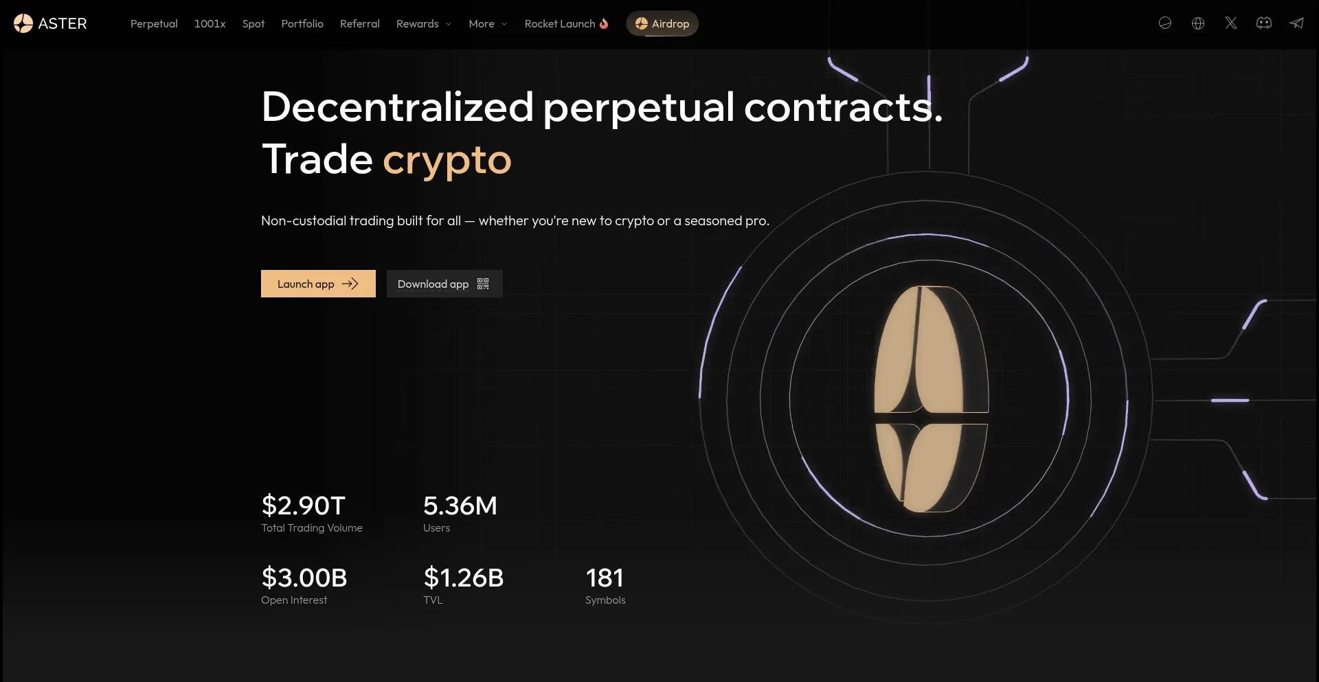 Trade perpetuals on Aster, the top DEX with low fees, deep liquidity, multichain support, high leverage and yield. Use Simple or Pro mode. Secure and non-custodial.