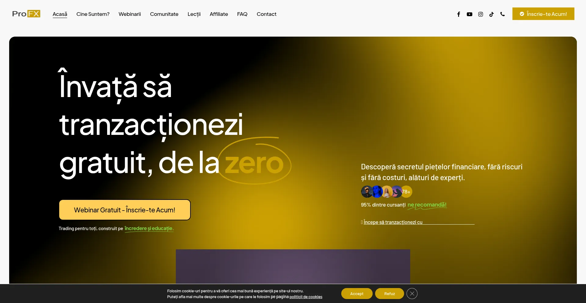 The website implements cookie consent mechanisms in compliance with privacy regulations such as GDPR or CCPA. This demonstrates that profx.ro adheres to data protection standards and provides users with control over personal data collection practices.