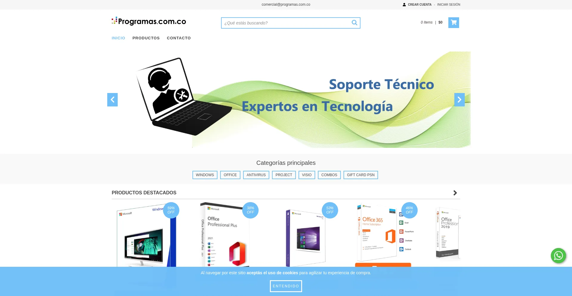 Comprá productos de programas.com.co por internet. Tenemos windows, office y más. Hacé tu pedido y pagalo online.
