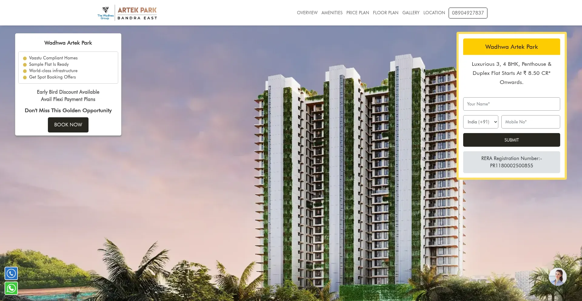Wadhwa Artek Park is a luxurious residential elevation in Bandra East, presenting 3 BHK, 4 BHK, Penthouse & Duplex Penthouses.
