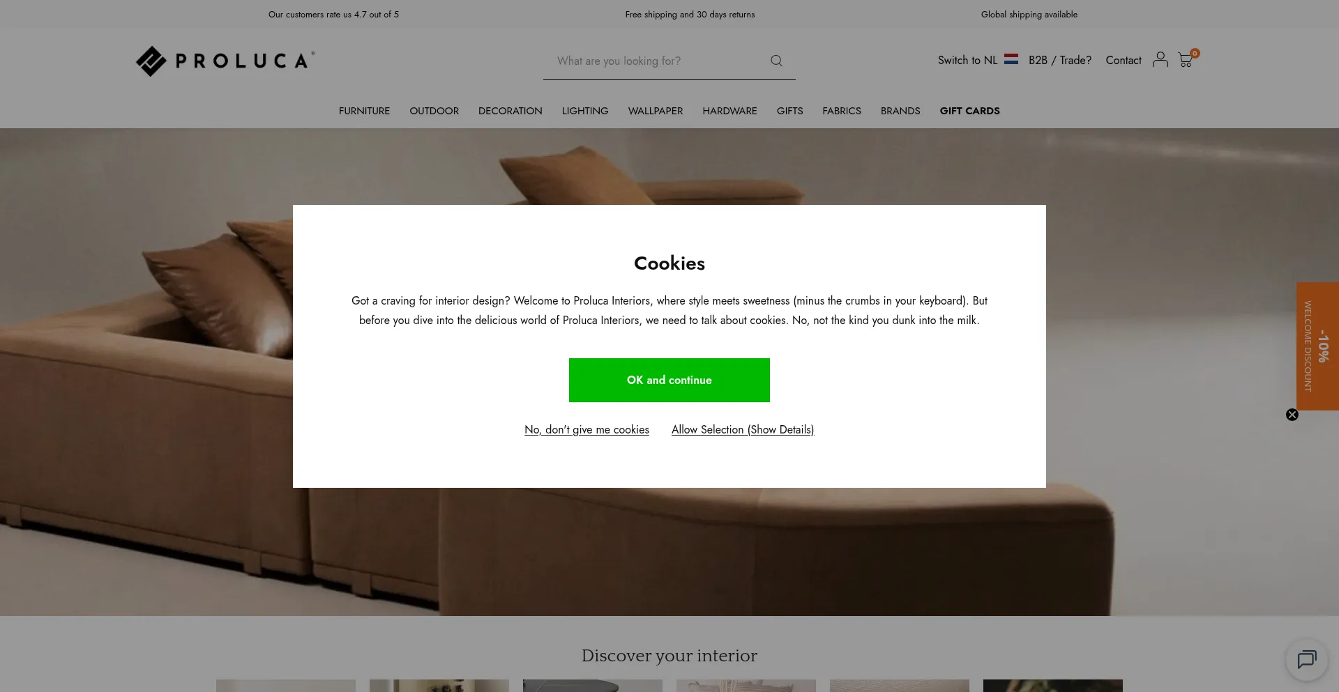 The website implements cookie consent mechanisms in compliance with privacy regulations such as GDPR or CCPA. This demonstrates that prolucainteriors.com adheres to data protection standards and provides users with control over personal data collection practices.
