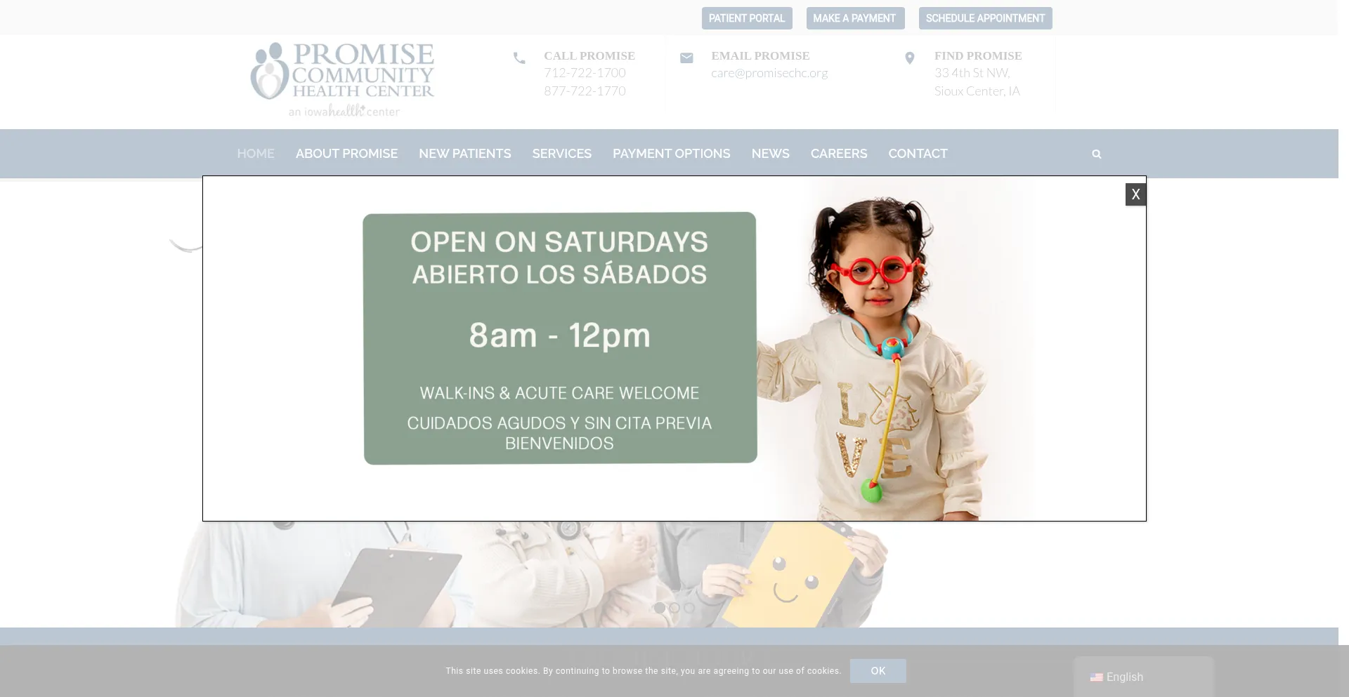 Promise Community Health Center – Located in Sioux Center, Northwest Iowa – The mission of Promise Community Health Center is to provide accessible, holistic healthcare that adapts to the needs of the community to improve the wellbeing of all persons.