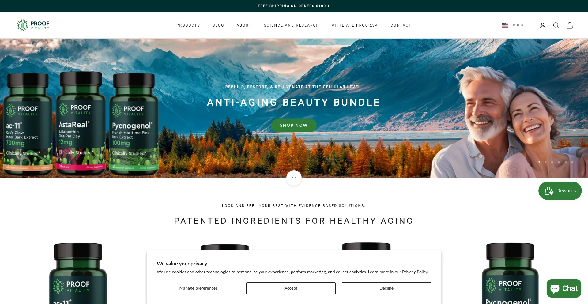 The website implements cookie consent mechanisms in compliance with privacy regulations such as GDPR or CCPA. This demonstrates that proofvitality.com adheres to data protection standards and provides users with control over personal data collection practices.