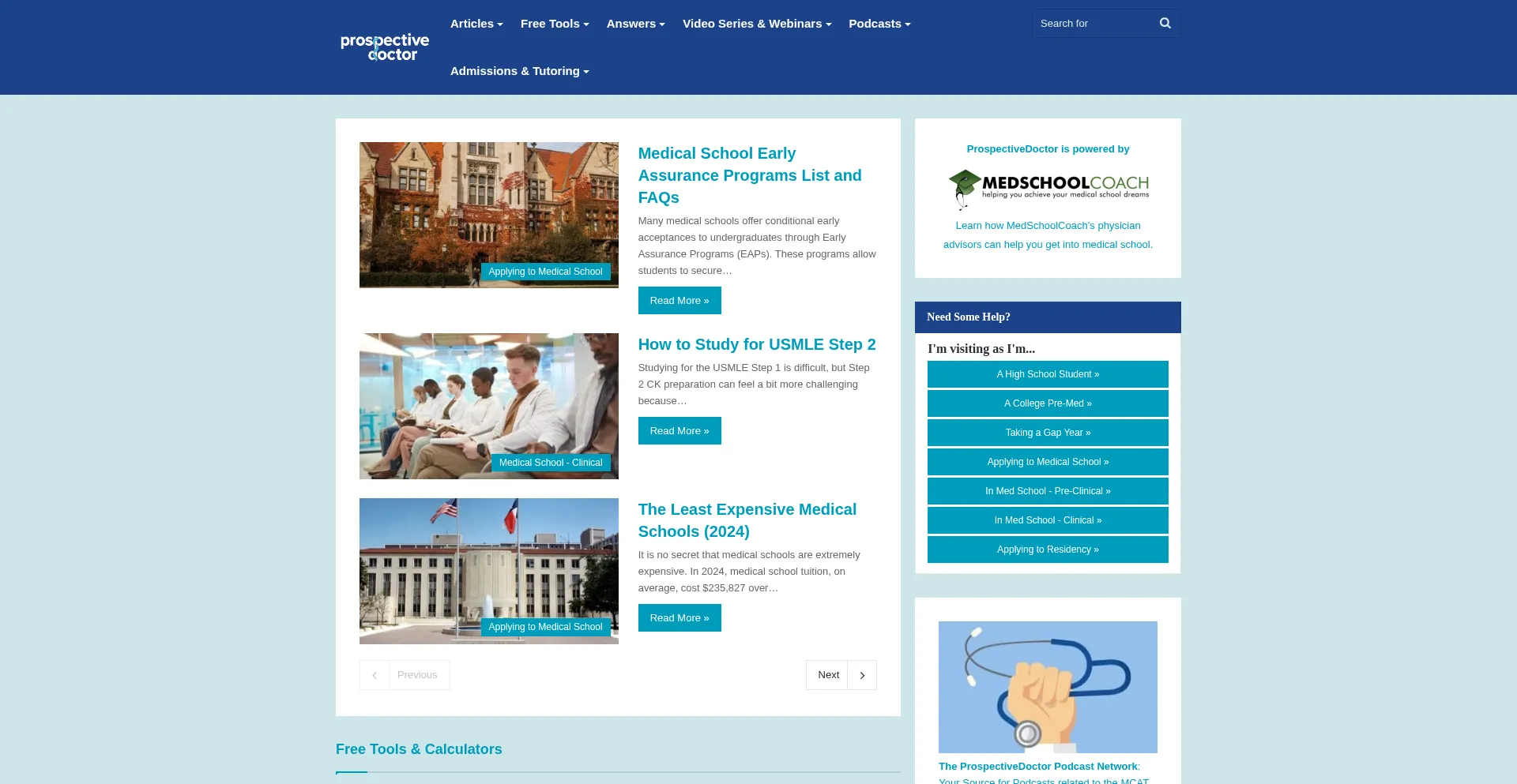 Prospective Doctor provides students seeking a career as a physician with resources to learn, including articles, webinars, podcasts, tools, and coaching.