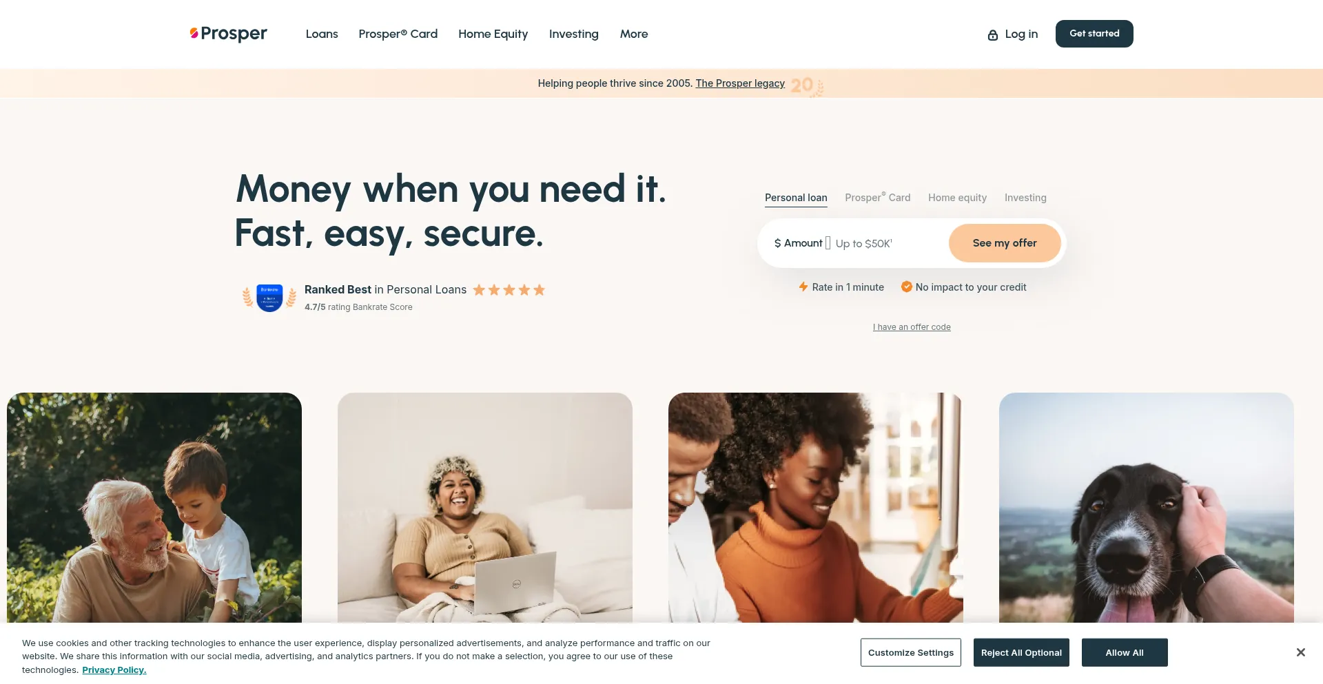 The website implements cookie consent mechanisms in compliance with privacy regulations such as GDPR or CCPA. This demonstrates that prosper.com adheres to data protection standards and provides users with control over personal data collection practices.