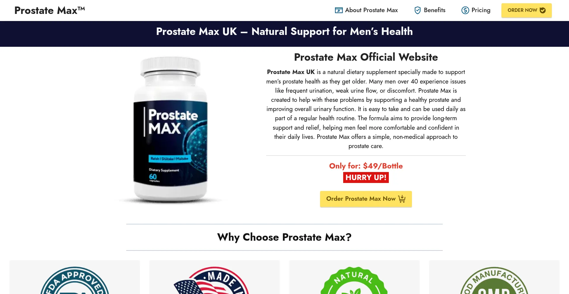Prostate Max UK is a natural supplement that helps support healthy prostate size, reduce urgency, and improve comfort for aging men.