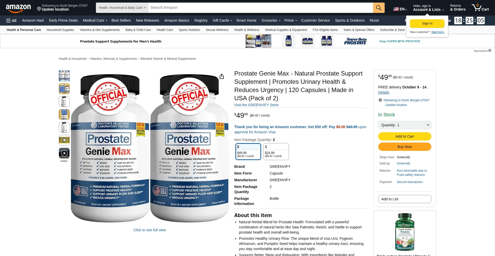 Amazon.com: GREENVIFY Prostate Genie Max - Natural Prostate Support Supplement | Promotes Urinary Health & Reduces Urgency | 120 Capsules | Made in USA (Pack of 2) : Health & Household
