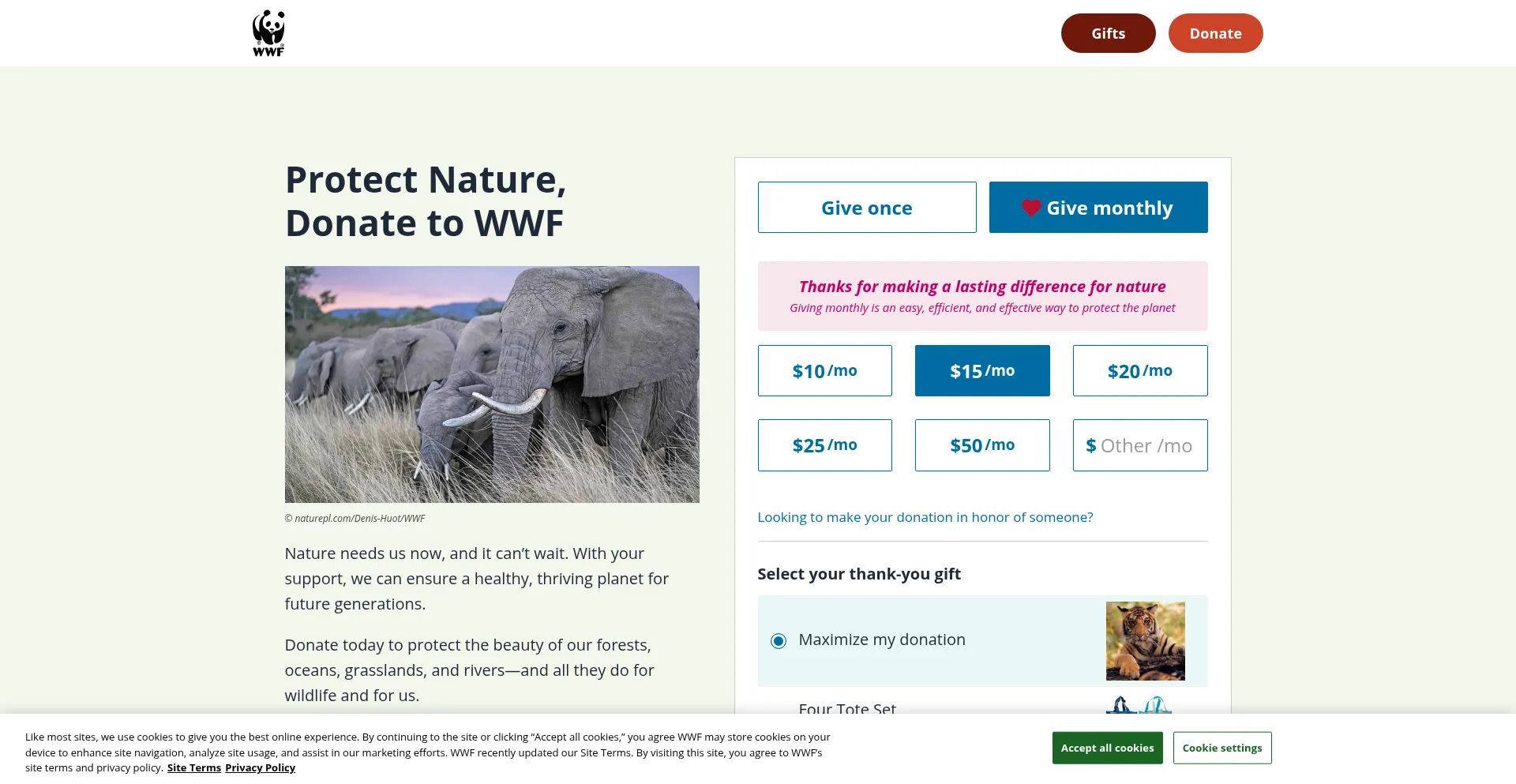 The website implements cookie consent mechanisms in compliance with privacy regulations such as GDPR or CCPA. This demonstrates that protect.worldwildlife.org adheres to data protection standards and provides users with control over personal data collection practices.