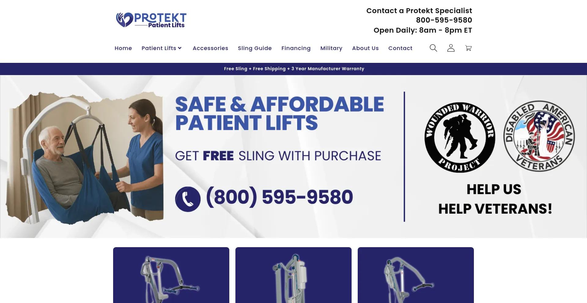 The protektpatientlifts.com website utilizes free e-commerce platform solutions, which may indicate cost-conscious operations but could also suggest limitations in security features, customer support, or advanced functionality compared to enterprise-grade solutions.