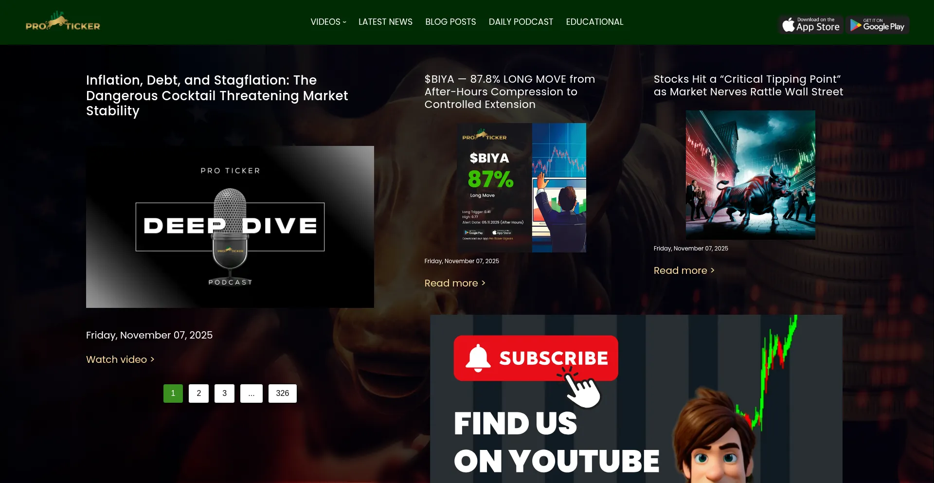 The protickersignals.com website offers a mobile application for Android devices, indicating expanded platform presence beyond web-based services.