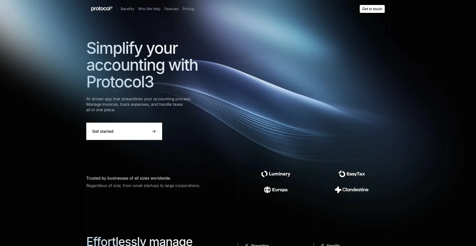 Protocol3 is an AI-driven app that streamlines your accounting process. Manage invoices, track expenses, and handle taxes all in one place.