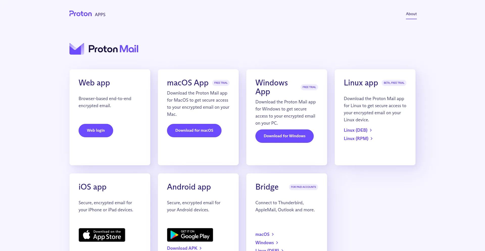Download Proton Mail, Proton Calendar, Proton VPN, and Proton Drive for your device (Android, iOS, Windows, macOS, or Linux).