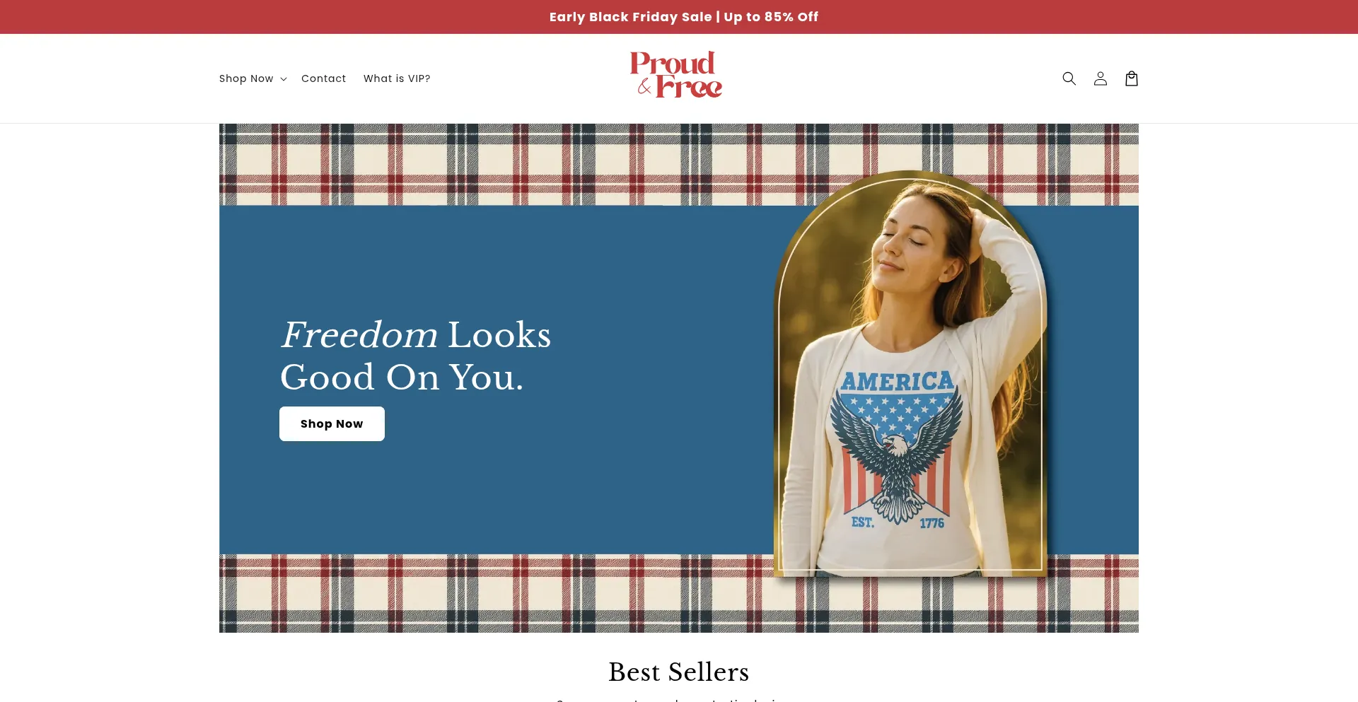 The proudandfree.com website utilizes free e-commerce platform solutions, which may indicate cost-conscious operations but could also suggest limitations in security features, customer support, or advanced functionality compared to enterprise-grade solutions.