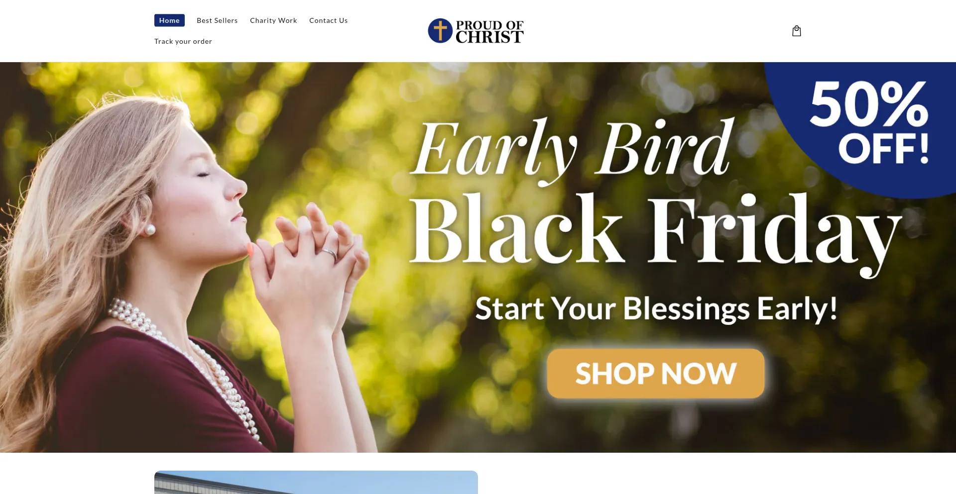 Analysis indicates that proudofchrist.com operates as an e-commerce platform facilitating online transactions for goods or services. The website implements shopping cart functionality, payment processing systems, and product catalog features typical of commercial retail operations.