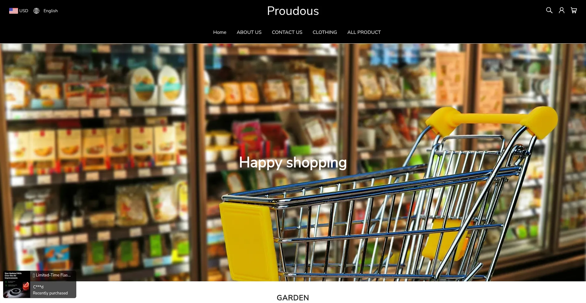 Analysis indicates that proudous.com operates as an e-commerce platform facilitating online transactions for goods or services. The website implements shopping cart functionality, payment processing systems, and product catalog features typical of commercial retail operations.