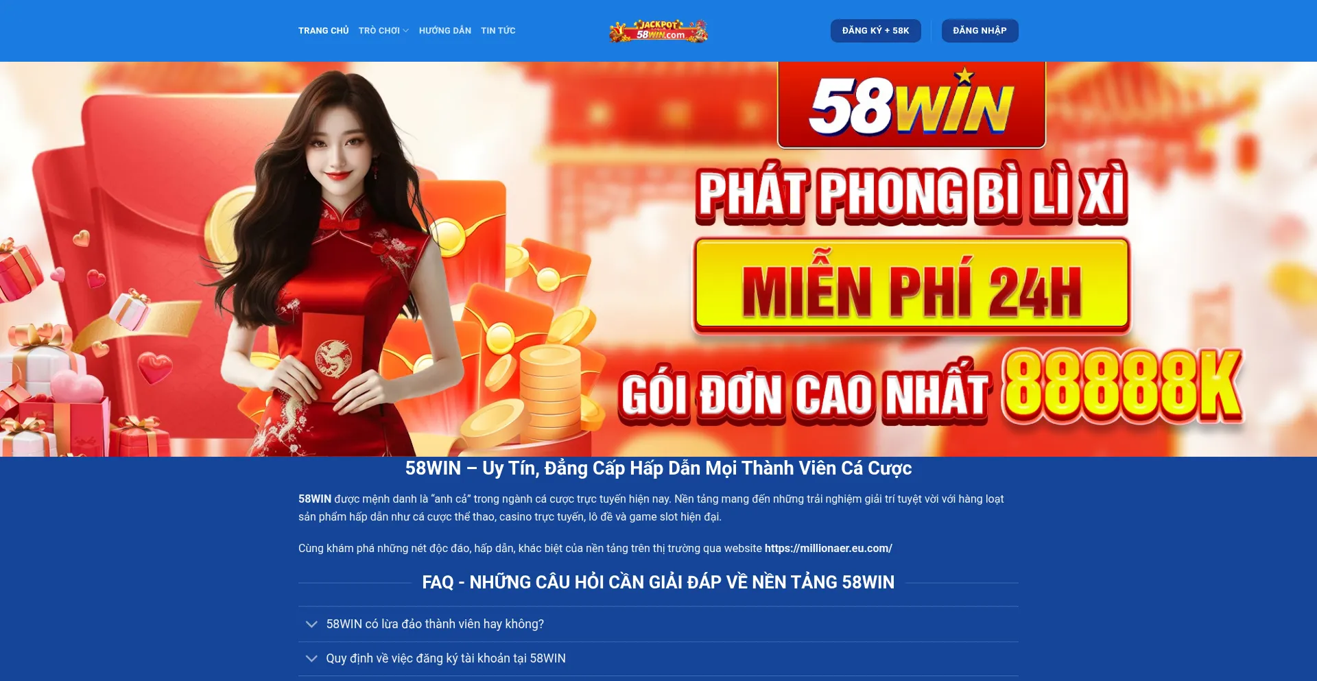58WIN – Cổng game trực tuyến hàng đầu 2025 mang đến trải nghiệm cá cược đỉnh cao với hàng ngàn ưu đãi lên tới 588888k cho thành viên mới..