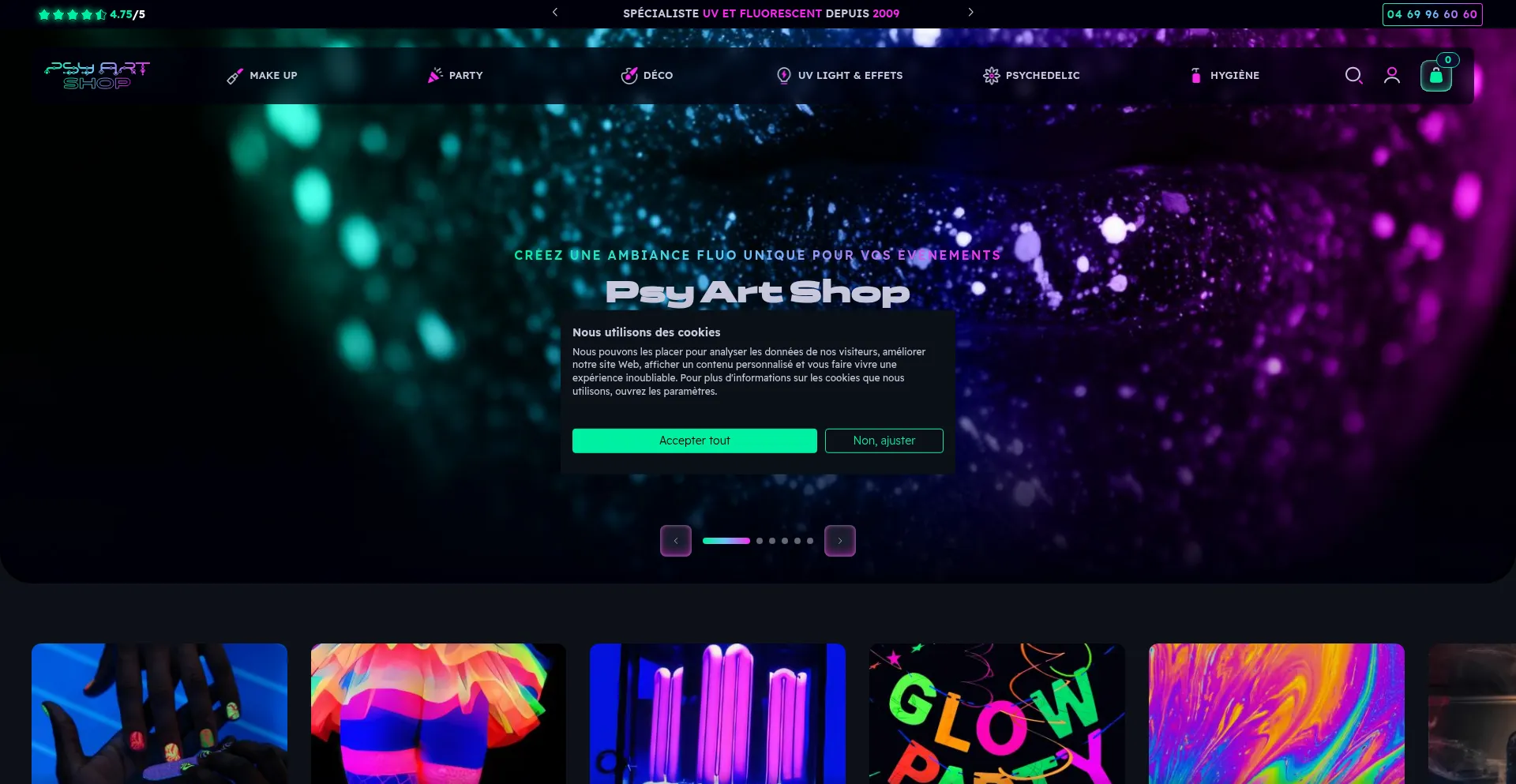 Psy Art Shop - Boutique lumière noire : décoration, peinture et maquillage fluo